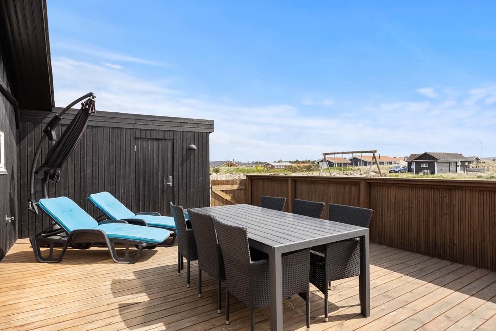Direkt vom Wohnraum eures Ferienhauses aus, habt ihr Zugang zu der geschlossenen Terrasse, welche mit bequemen Sitzmöbeln ausgestattet ist. Genießt die Sonne auf einer der Sonnenliegen oder lasst den Urlaubstag bei einem leckeren Grillabend mit der ganzen Familie ausklingen. Der offene Teil der großen Terrasse, im vorderen Teil eures Ferienhauses, bietet Platz für ein leckeres Picknick und zudem Schutz vor leichtem Sommerregen und Wind im überdachten Teil der Terrasse direkt nebenan.