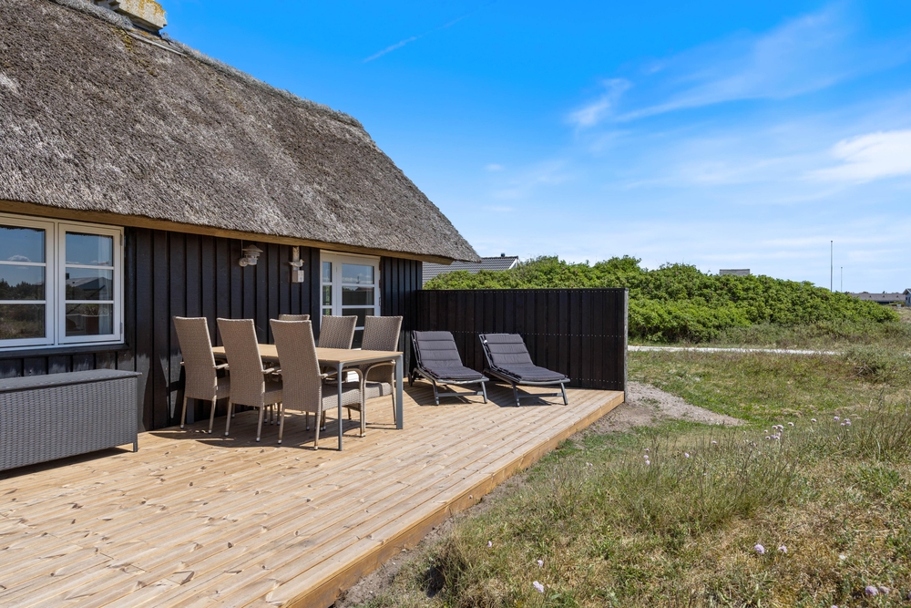 Dieses gemütliche, reetgedeckte Ferienhaus im Dortheasvej 67 wurde sorgfältig und im ursprünglichen Stil renoviert. Das Ferienhaus ist hell und freundlich und bietet eine gemütliche Ferienhausatmosphäre. Draußen findet ihr eine schöne Südterrasse, wo ihr die Sommersonne und die frische Luft der dänischen Westküste genießen könnt.