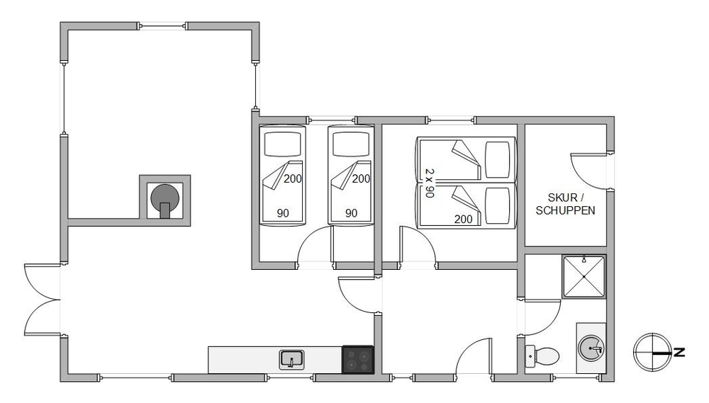 Am Esstisch könnt ihr die Mahlzeiten des Tages, in der charmanten Umgebung genießen oder ein Brettspiel spielen. Die offene Küche bietet alles, was ihr braucht, um euch mit köstlichen, hausgemachten Mahlzeiten zu verwöhnen, einschließlich einer Spülmaschine. Angler werden besonders den separaten 100-Liter-Gefrierschrank zu schätzen wissen. Hier gibt es genug Platz für den einen oder anderen Fang.
