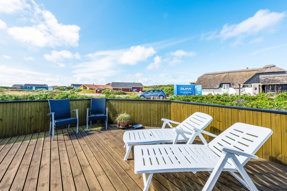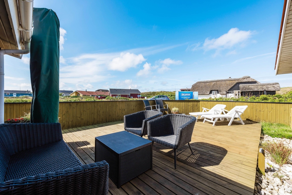 Besonders für Familien mit kleinen Kindern ist eine geschlossene Terrasse perfekt geeignet, um die kleinen Kinder auch mal ohne Probleme auf die Terrasse zu lassen. Du magst lieber in der Sonne sitzen, wohingegen dein Miturlauber den Schatten bevorzugt? Kein Problem, denn die Terrasse bietet nicht nur ein überdachtes schattiges Plätzchen, sondern auch eine offene Fläche, wo du dich auf eine Sonnenliege in der dänischen Sonne bräunen lassen kannst.