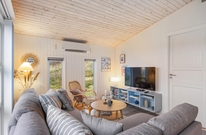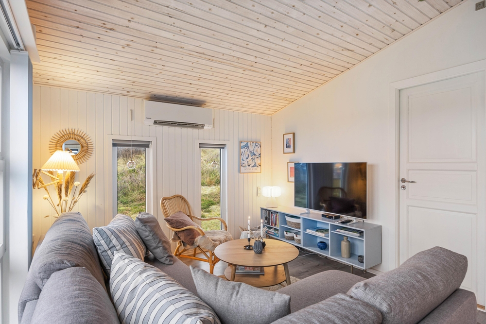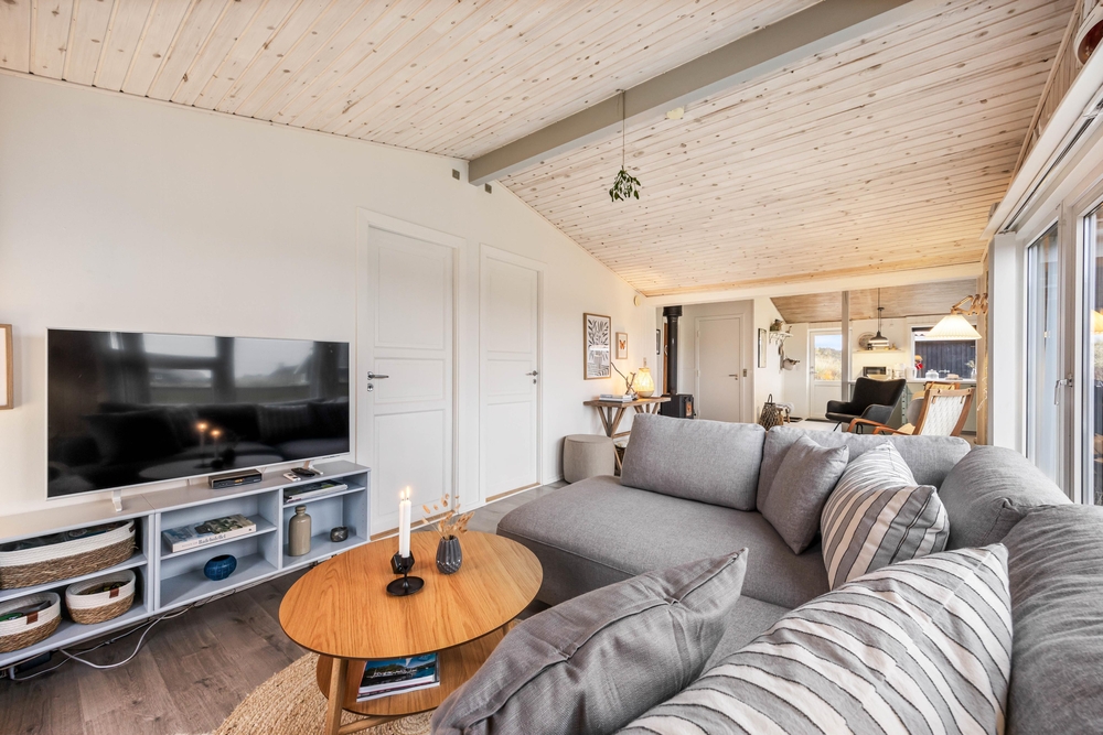 Herzstück des Ferienhauses stellt der gemütliche Wohnbereich dar. Mit großen Terrassenfenstern ausgestattet, erfreut sich das Wohnzimmer mit der gemütlichen Couch über viel Helligkeit das ganze Jahr hindurch. Durch die vielen kleinen Dekorationselemente erwacht das Ferienhaus zum Leben und wirkt gemütlich und einladend.