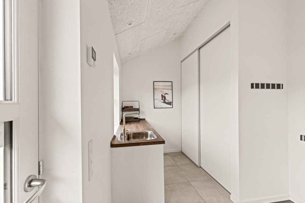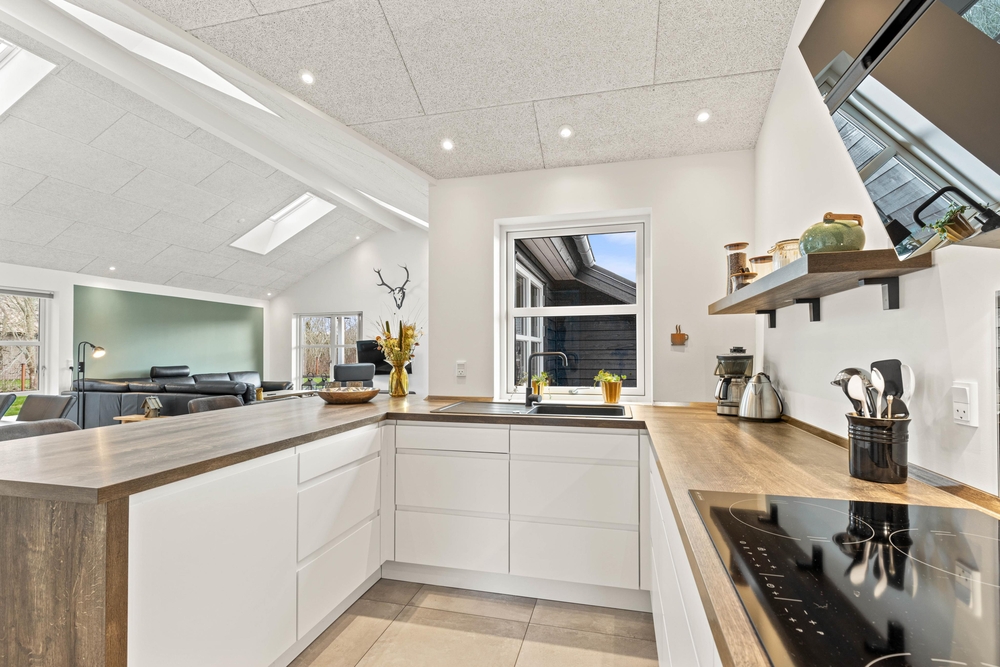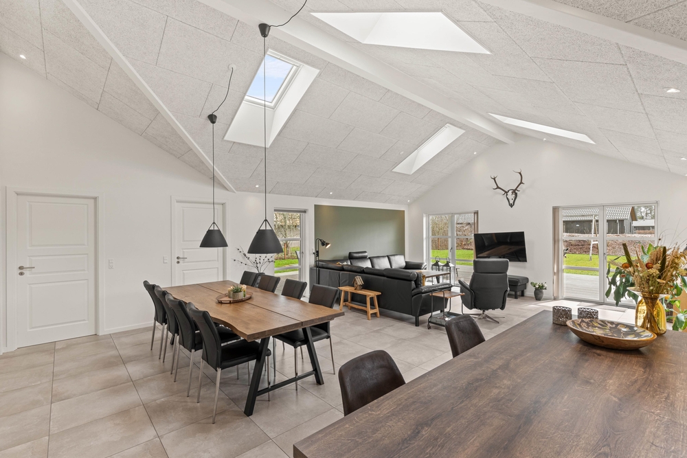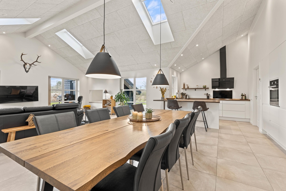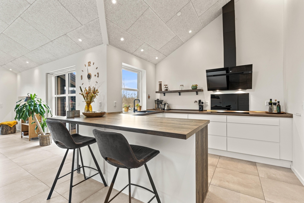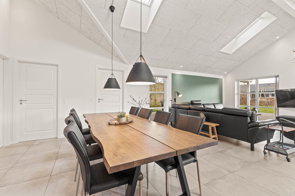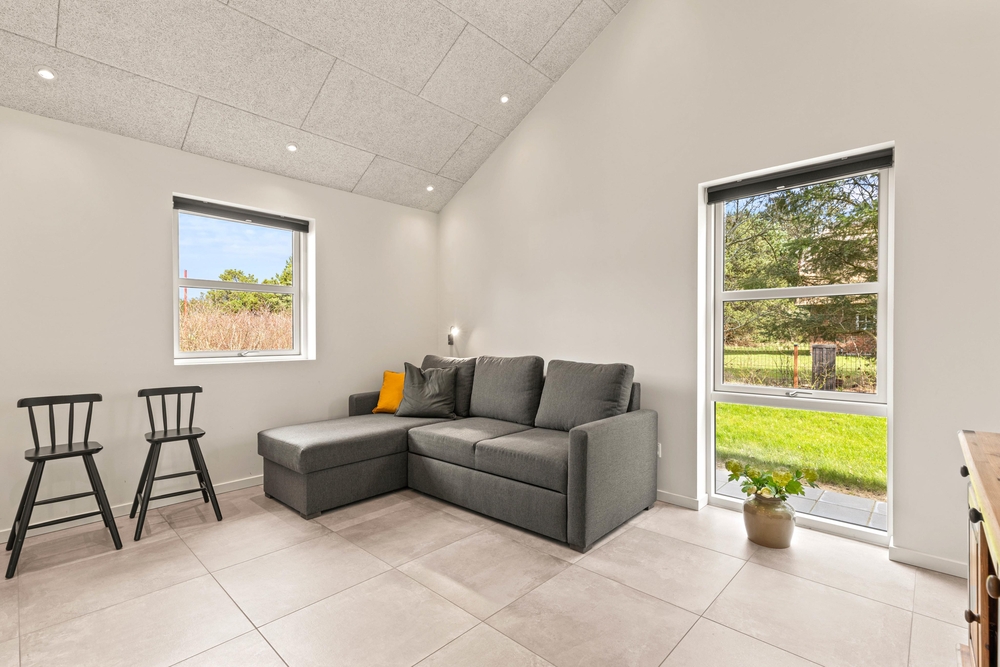 Duevej 4 bietet Platz für 8 Personen und auch euere 2 Hunde dürfen euch begleiten und sich auf lange Spaziergänge am Strand und durch die schöne Natur freuen. Das Ferienhaus ist hell und gemütlich mit ruhigen, neutralen Farben und Holztönen eingerichtet. Es gibt hohe Decken und zahlreiche Fenster, wodurch das Sommerhus einladend und hell wirkt.