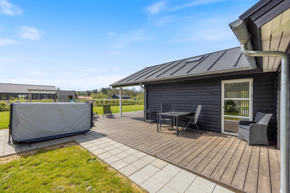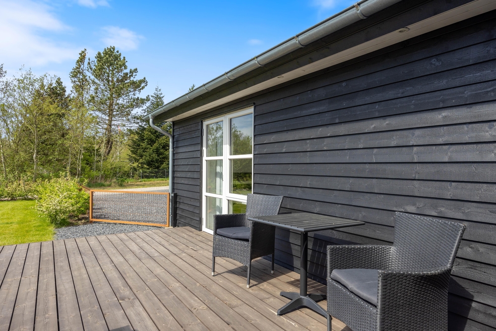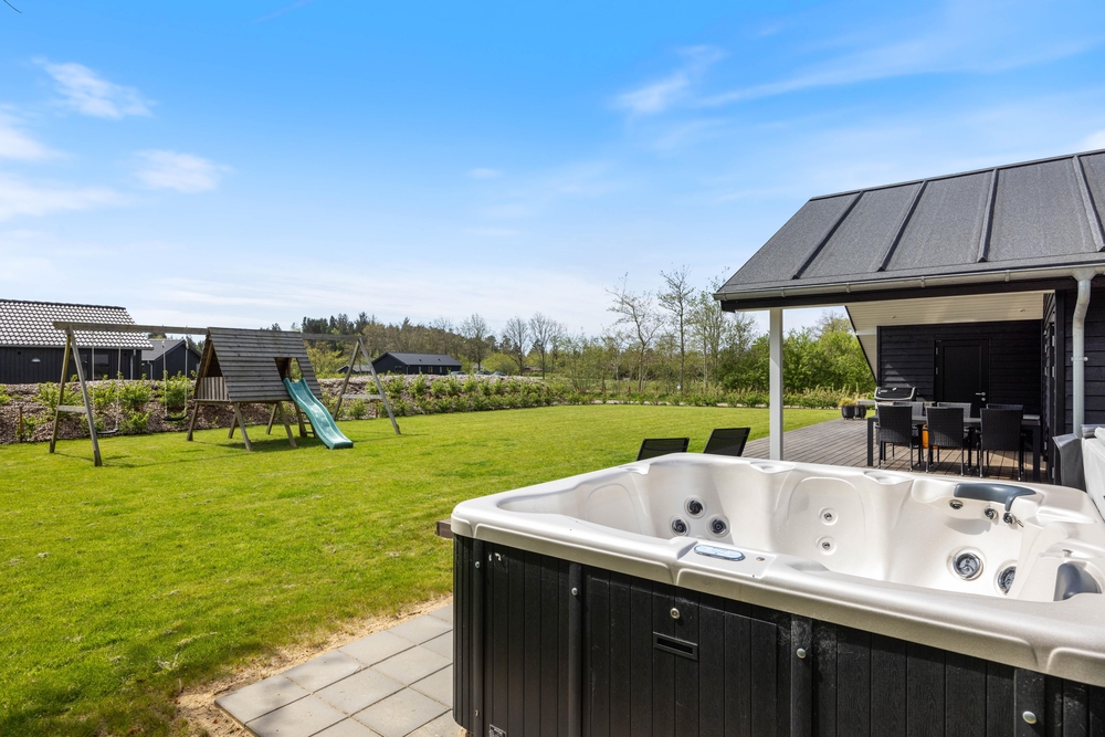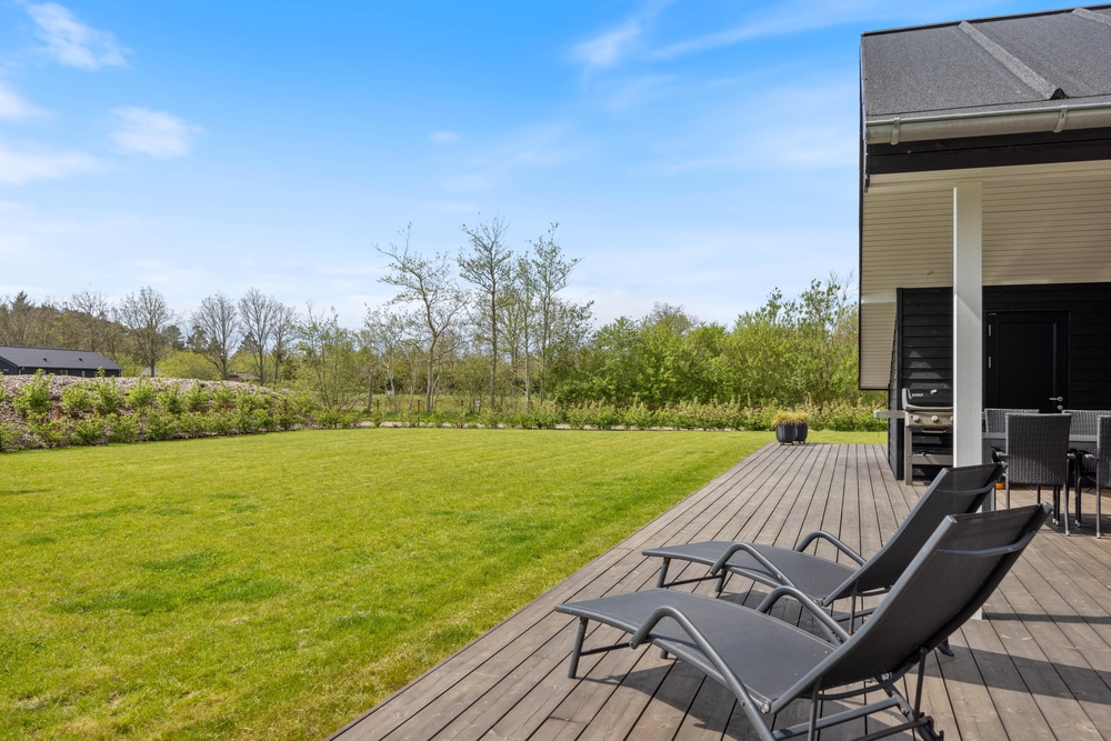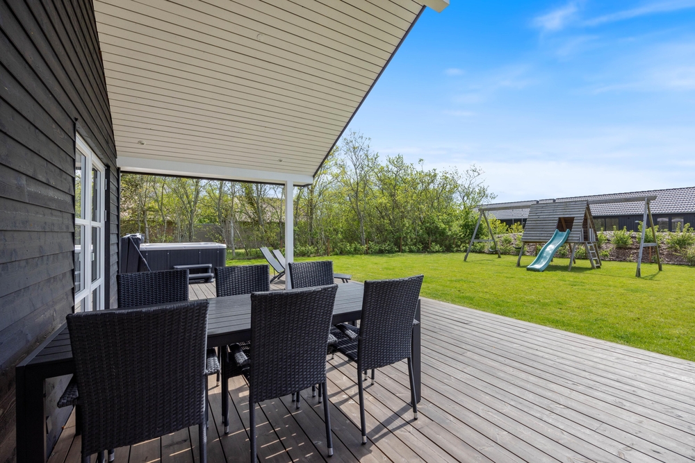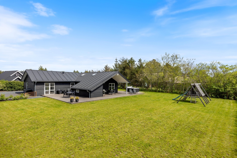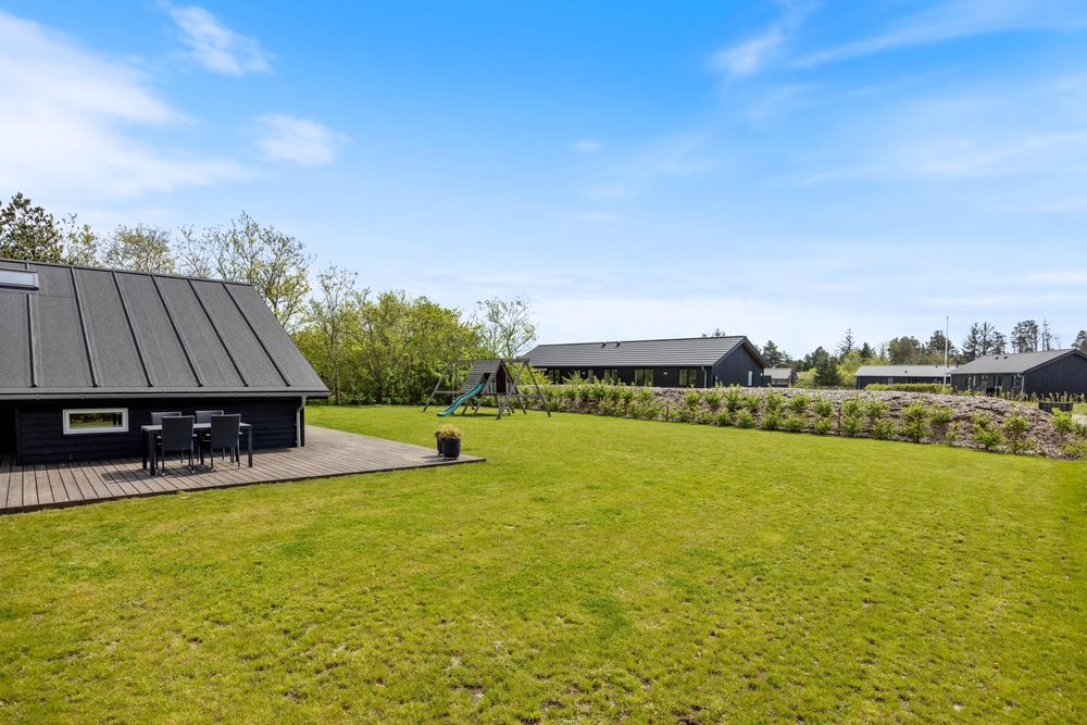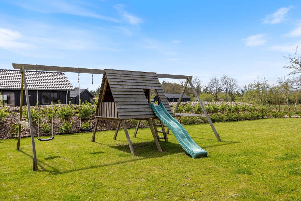 Das schwarze Holzferienhaus steht auf einem umzäunten Grundstück von fast 1600 qm, von dem ein großer Teil mit Rasen bedeckt ist. Hier ist viel Platz für Fußballspiele, Wikingerschach und andere lustige Aktivitäten. Eure Kinder können auf der Schaukel und der Rutsche spielen und hier im umzäunten Garten kann auch euer Hund frei herumtollen.