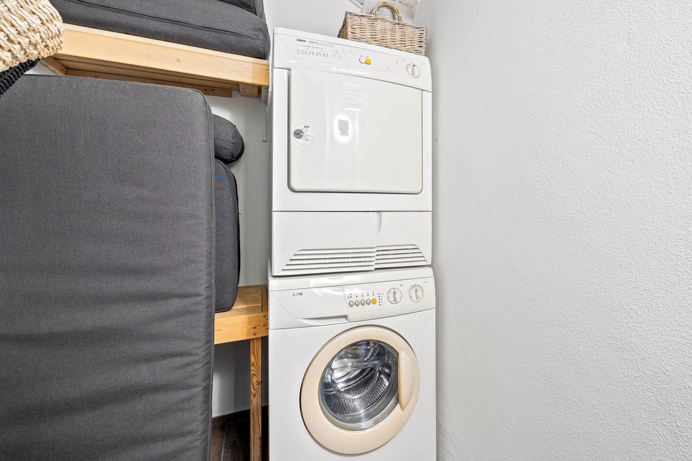 Eine zusätzliche Gästetoilette steht ebenfalls zur Verfügung, ebenso wie eine Waschmaschine und ein Trockner, um den Aufenthalt noch komfortabler zu gestalten.