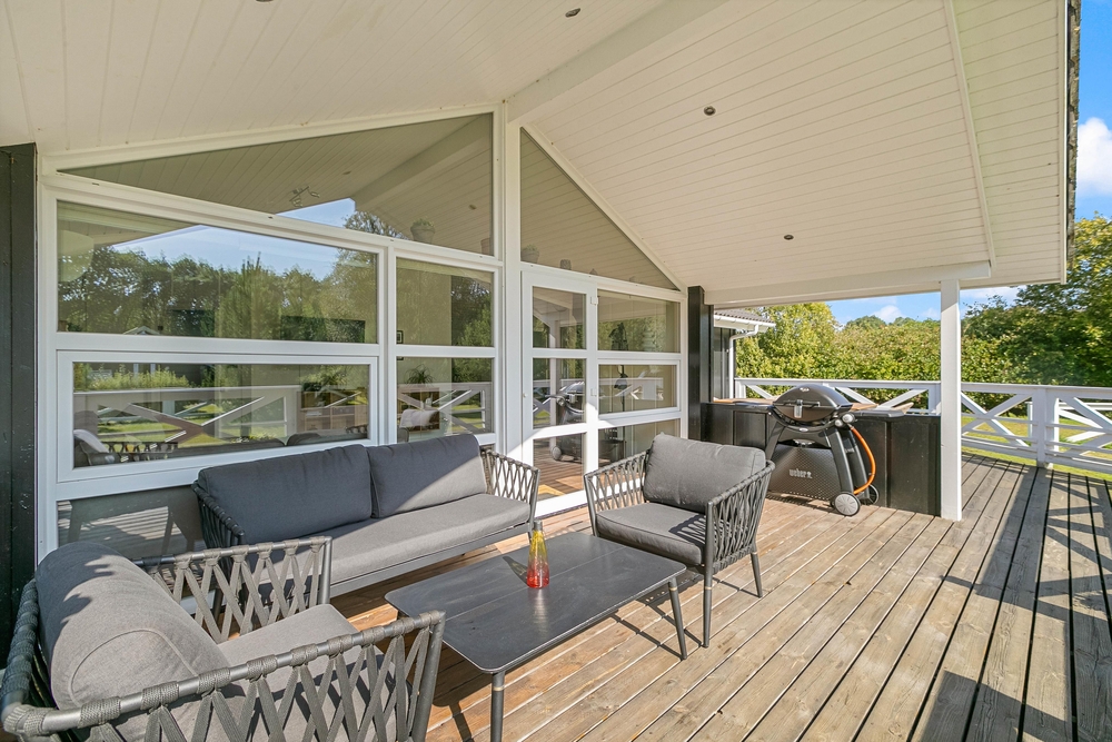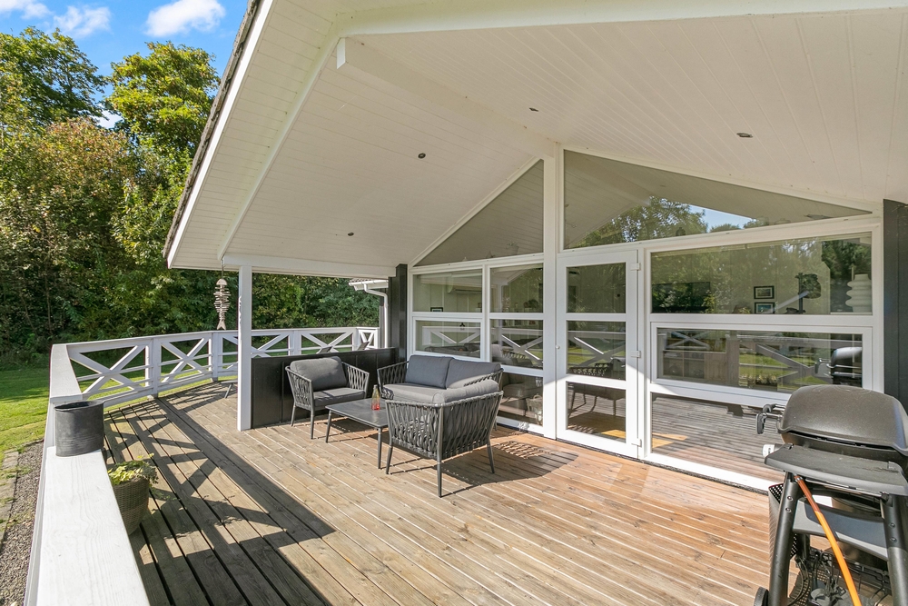 Das großzügige Rasengrundstück im Enebærvangen 15 lädt zu gemütlichen Stunden im Freien ein und bietet ausreichend Platz für Spiele oder einfach zum Sonnenbaden. Hier könnt ihr die friedliche Atmosphäre genießen und den Alltagsstress hinter euch lassen. Ihr habt die Wahl zwischen einer abgeschirmten, einer geschlossenen und einer überdachten Terrasse, die euch wetterunabhängig die Möglichkeit geben, die frische Luft zu genießen. Ob beim morgendlichen Kaffee, beim Lesen eines guten Buches oder beim abendlichen Glas Wein ? jede Terrasse schafft eine angenehme und private Atmosphäre für eure persönlichen Ruhepausen.