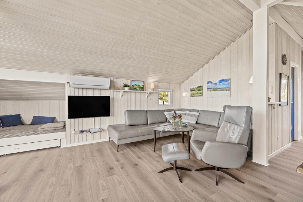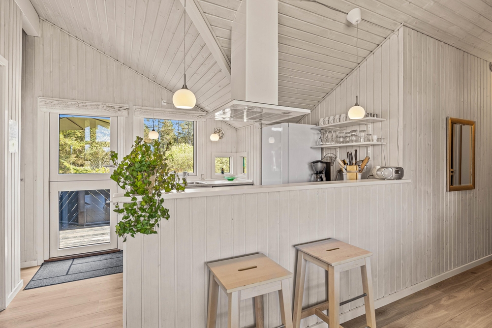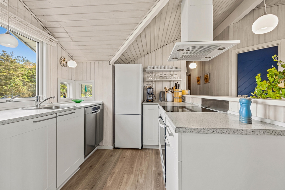Die Bettnische wird bestimmt euren Kindern gut gefallen, denn sie bietet einen zusätzlichen Rückzugsort. Durch die Fensterfront kommt viel natürliches Licht herein und ihr könnt vom Sofa aus, den Blick in die Natur schweifen lassen. In der gut ausgestatteten, offenen Küche findet ihr alles, was ihr für die Zubereitung leckerer Mahlzeiten benötigt. Die moderne Einrichtung umfasst u. A. eine Spülmaschine, die gerne den Abwasch für euch übernimmt.