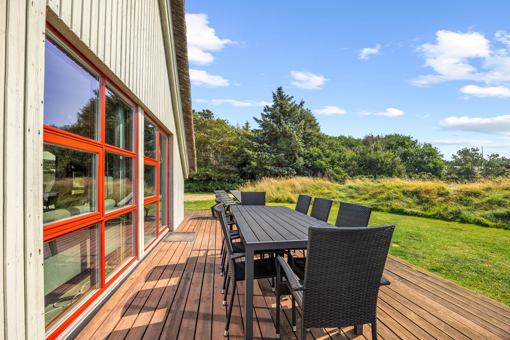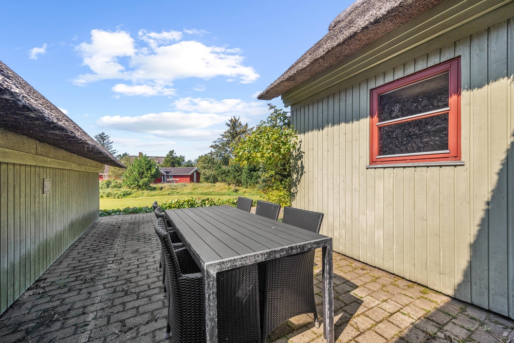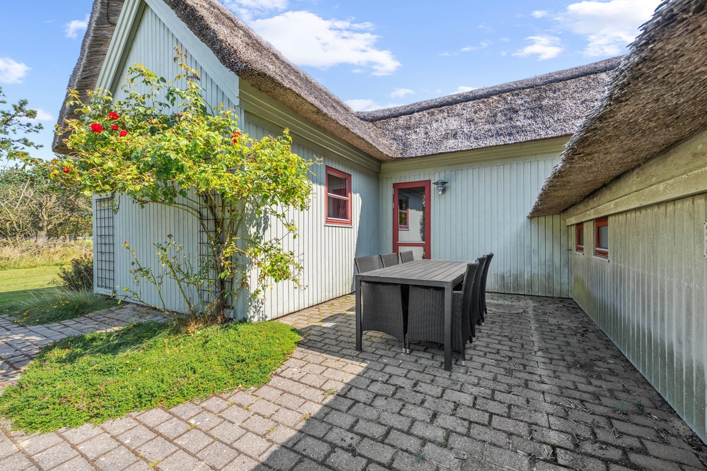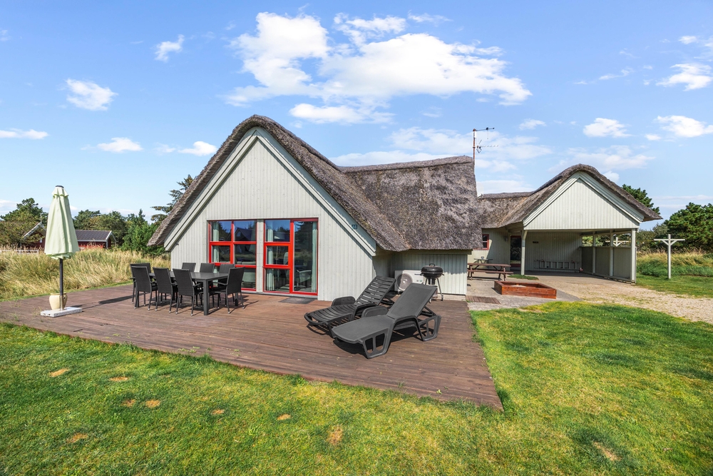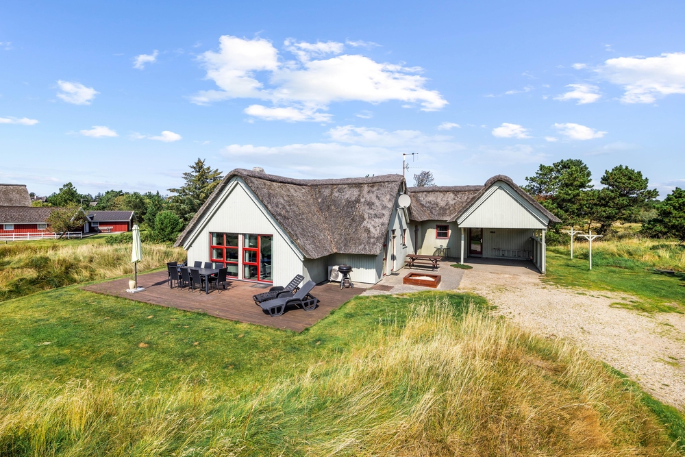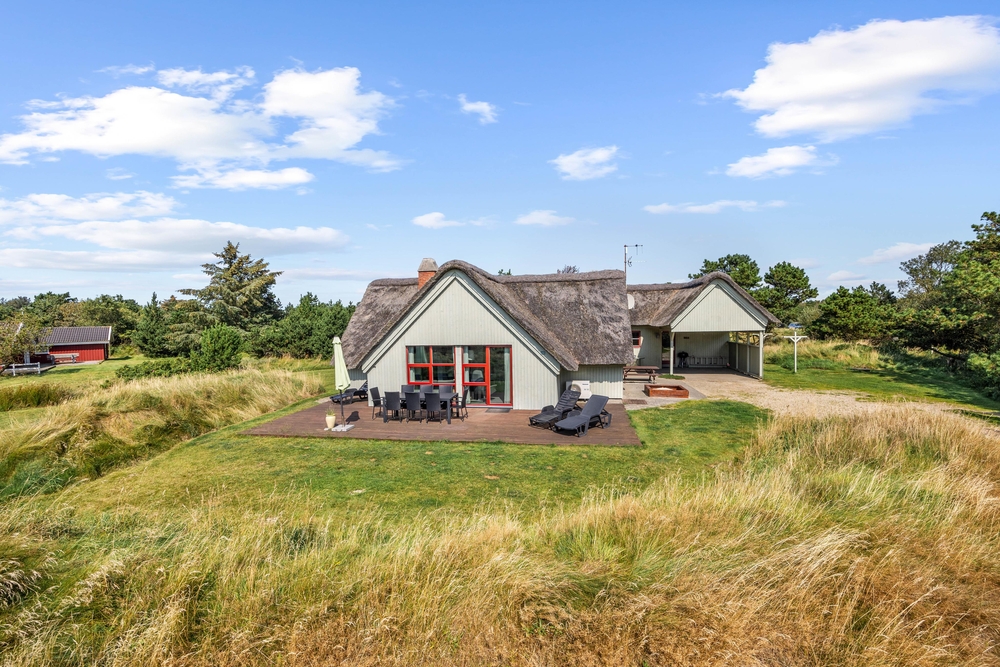 Das Reetdachhaus liegt auf einem großen Grundstück, umgeben von Heide, Bäumen und Büschen. Die landschaftlich reizvolle Umgebung schafft eine friedliche und ruhige Atmosphäre rundherum, so dass ihr und vorallem die Kinder das Grundstück in vollen Zügen genießen können. Für die Jüngsten stehen einige Spiel- und Unterhaltungsmöglichkeiten bereit ? und ihr könnt die grüne Aussicht von der großen Terrasse des Hauses aus genießen, mit einem guten Buch entspannen oder einfach etwas in der Sonne dösen, während die Vögel in den Wipfeln der Bäume zwitschern.