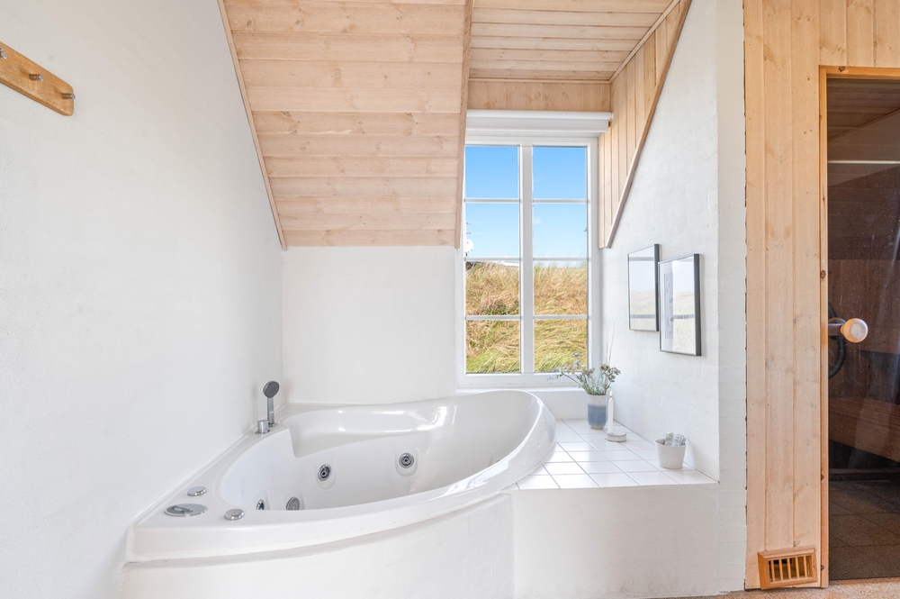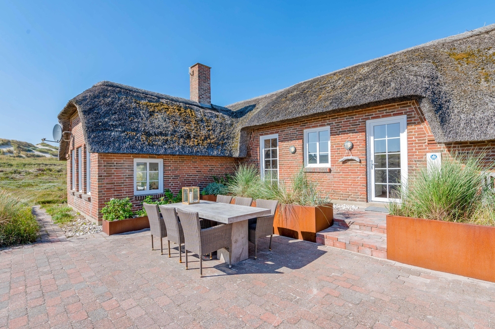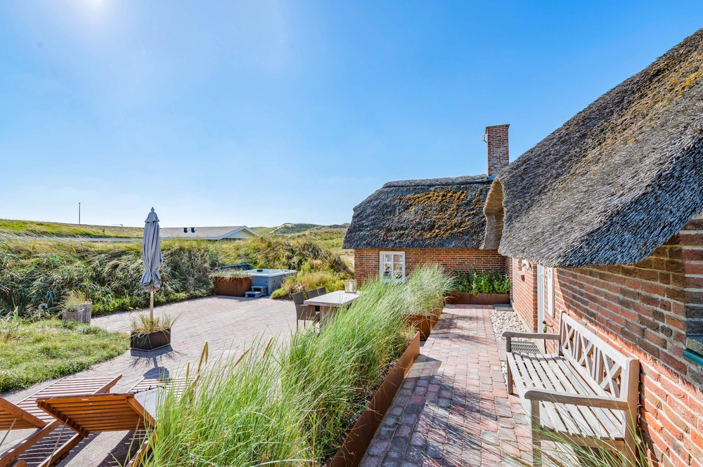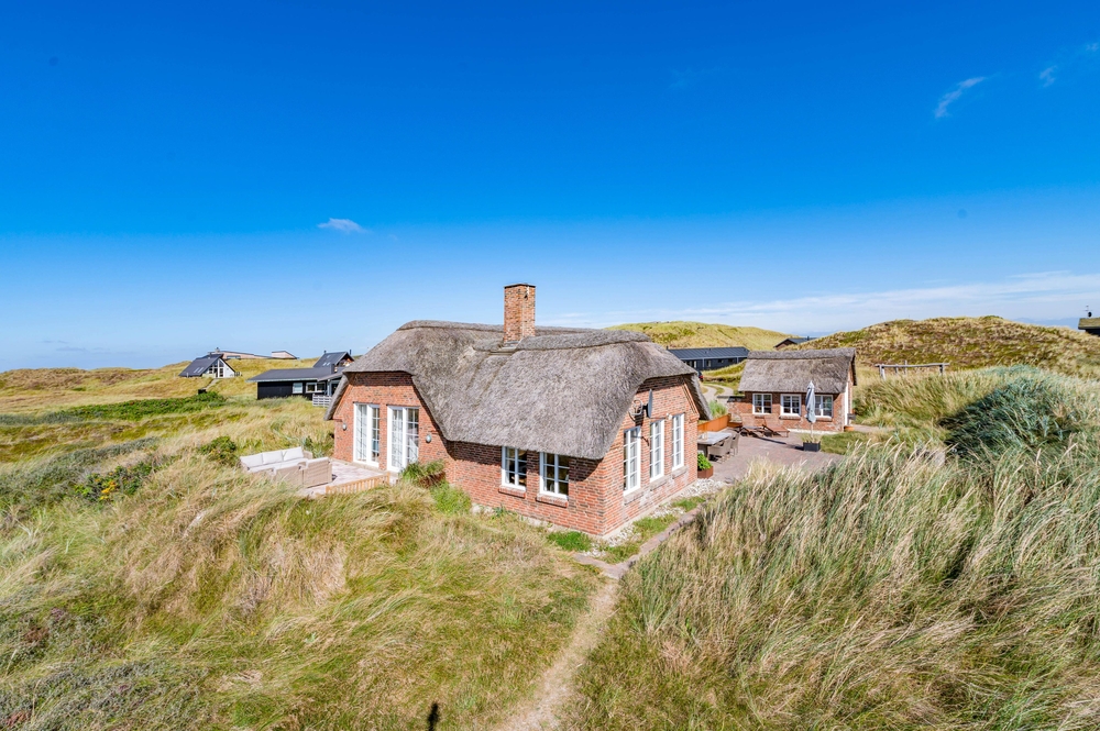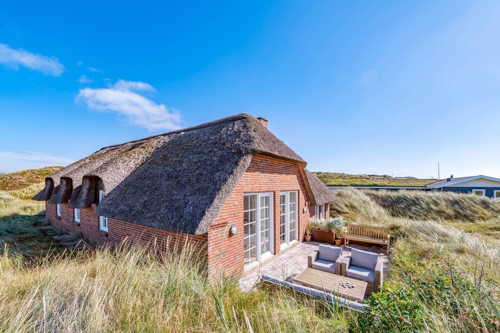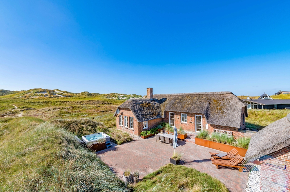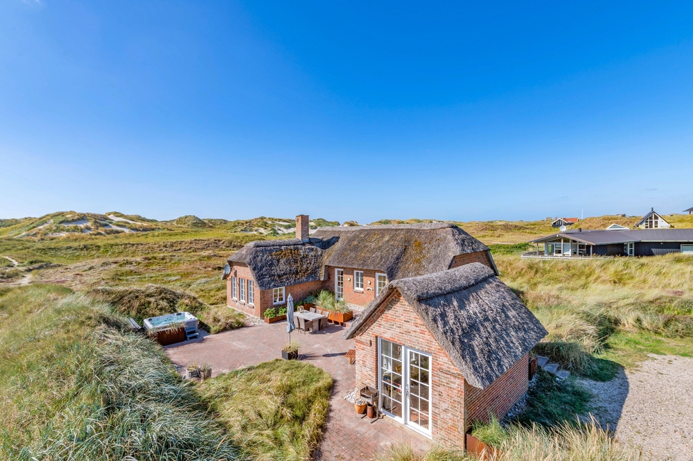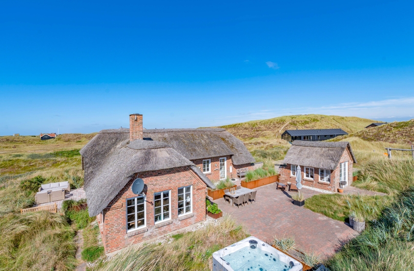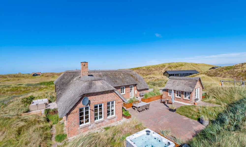Unmittelbar am Rande der Dünen in Houvig steht dieses schöne, reetgedeckte Ferienhaus für bis zu 8 Personen und 2 Hunde für einen schönen Urlaub am Meer bereit. Auf Esebjergvej 46 sind die besten Voraussetzungen für einen entspannten Urlaub gegeben, denn es gibt sowohl einen Außenwhirlpool, einen Whirlpool im Badezimmer als auch eine Sauna. Außerdem liegt der Strand sowie die imposante Dünenlandschaft nur knappe 170 Meter vom Ferienhaus in Houvig entfernt.