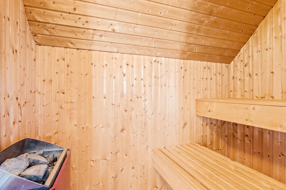 Eines der insgesamt 2 Badezimmer bietet einen Whirlpool sowie eine Sauna, in der ihr euch in der Wärme perfekt entspannen und auch einmal einen Moment nur für euch sein könnt.