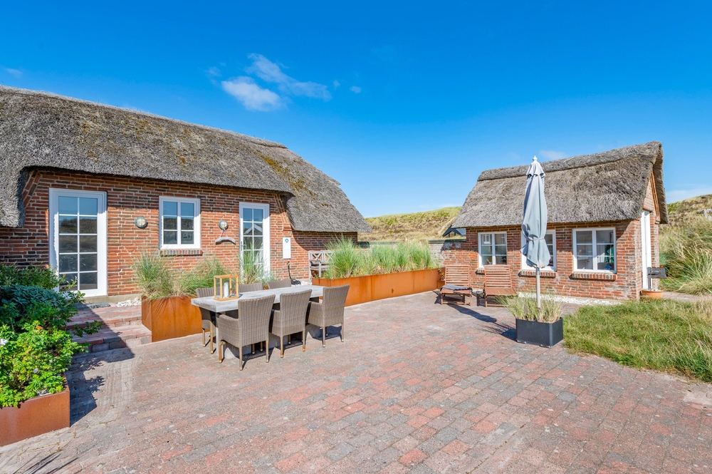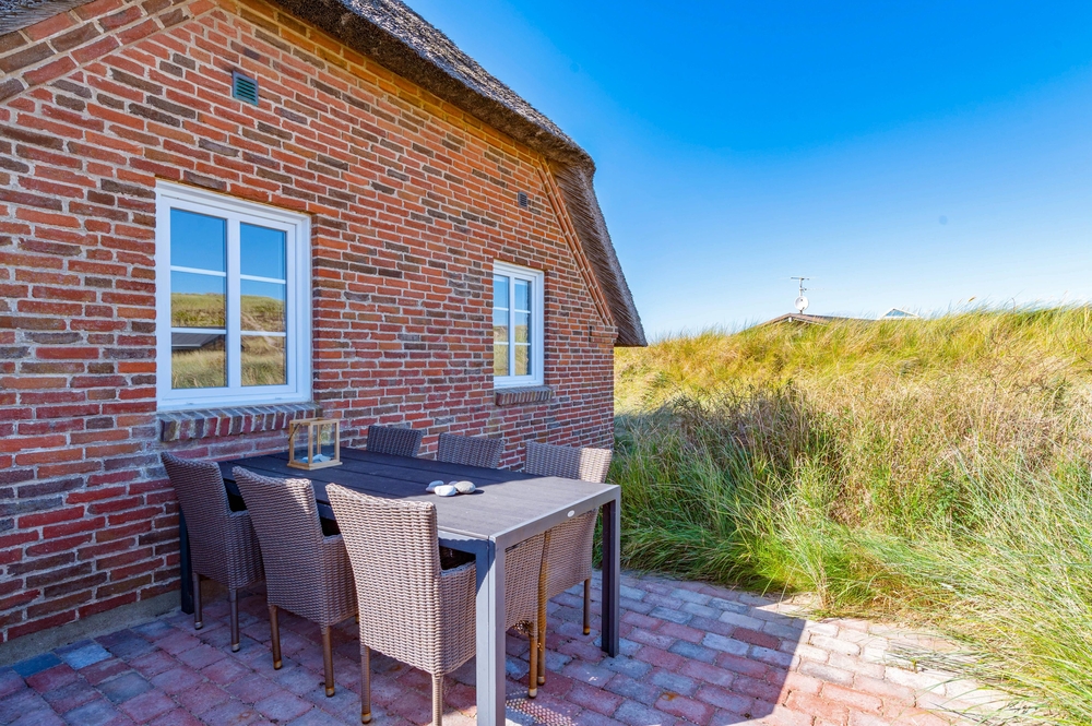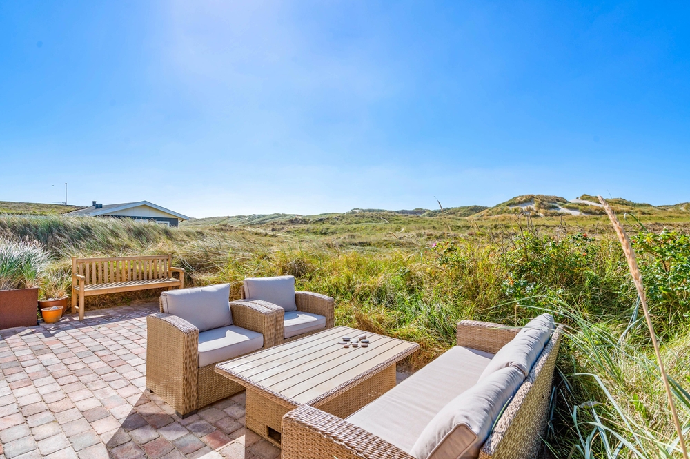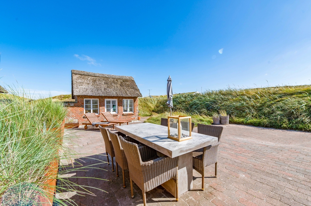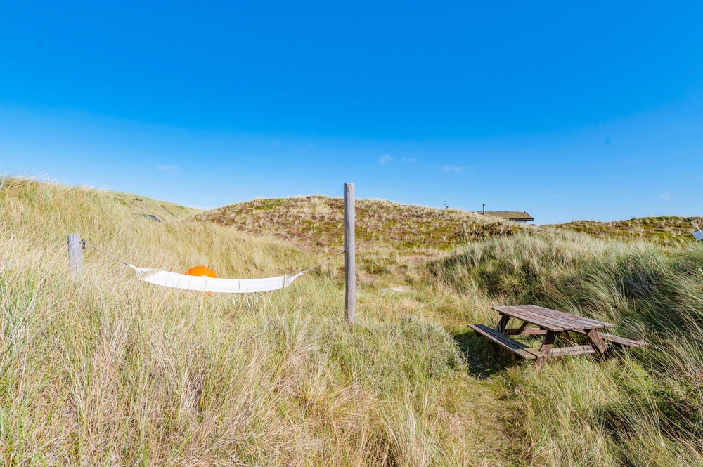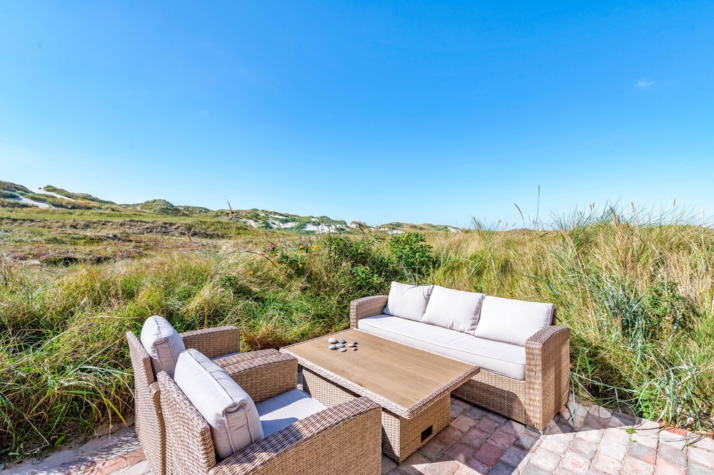 Der Außenbereich bietet euch eine offene, abgeschirmte Terrasse, auf der ihr es euch insbesondere an warmen und sonnigem Urlaubstagen zurückziehen könnt. Gartenmöbel, Grill und Liegestühle stehen bereit und die Aussicht auf die Dünen ist herrlich. Für die Kinder gibt eine Schaukel und viele Möglichkeiten, die Umgebung zu erkunden. Ein besonderes Abenteuer stellt sicherlich das Erkunden der Bunker in den Dünen dar ? hier können kleine Abenteurer so richtig auf Erkundungstour gehen ? packt unbedingt eine Taschenlampe ein!