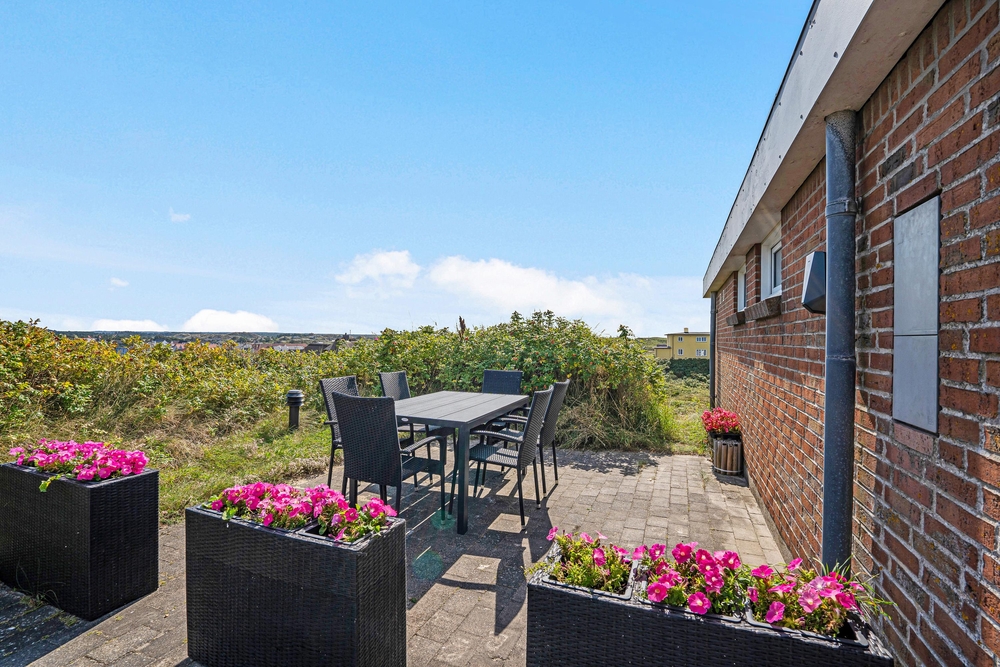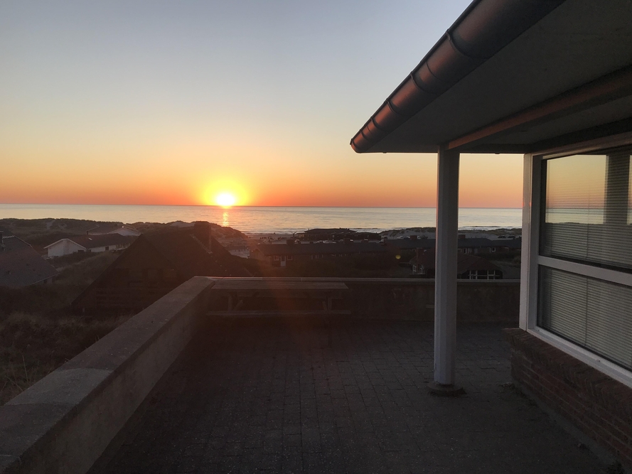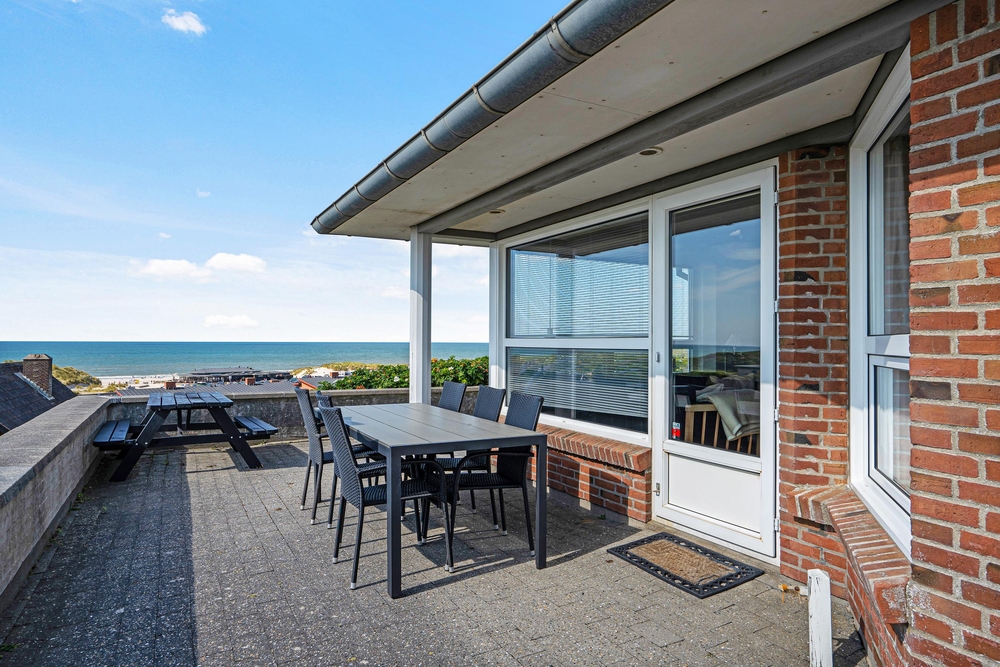 Auch von der Terrasse des Ferienhauses könnt ihr den Blick auf die Nordsee und die Umgebung genießen. Die Terrasse ist teilweise überdacht und hier stehen sowohl Gartenmöbel, als auch Sonnenliegen und Grill für euch bereit, damit ihr die Tage an der frischen Luft optimal genießen könnt. Stellt euch vor, ihr sitzt abends auf der Terrasse und genießt ein leckeres Essen, einen guten Wein und die schöne Aussicht auf die Nordsee, sowie den spektakulären Sonnenuntergang! Solche friedvollen Momente sind unbezahlbar.