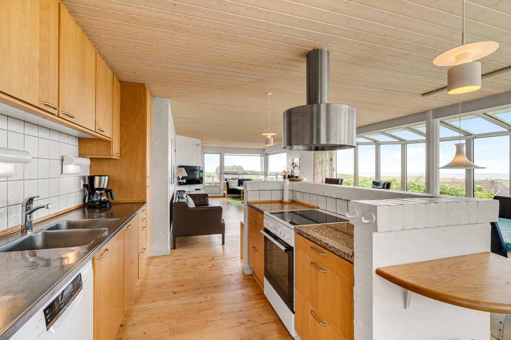 Auf Falkevej 23 in Henne Strand befindet sich dieses toll gelegene, strandnahe Ferienhaus mit Meerblick! Platz gibt es hier für bis zu 8 Personen, dieser lädt euch zu einem erholsamen Urlaub mit Wellness mit Badewanne und Sauna ein. Vom Ferienhaus aus selbst habt ihr einen traumhaften Blick auf die herrliche Nordsee, sowie über einen kleinen Weg mit direkten Zugang vom Ferienhaus in Richtung Strand. Es sind nur 300 Meter bis zum Strand und zu den Einkaufsmöglichkeiten in Henne. Eine Lademöglichkeit für ein Elektroauto steht auch direkt am Ferienhaus zur Verfügung.