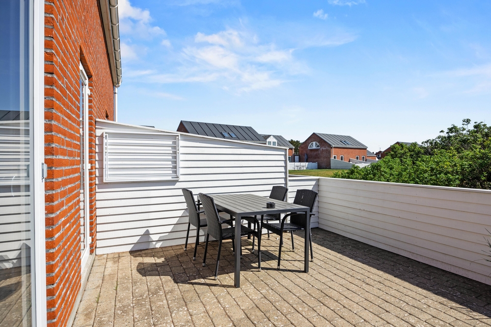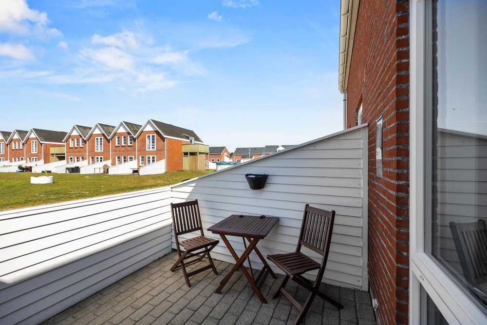 Die geschlossene Terrasse erreicht ihr direkt vom Wohnzimmer aus. Hier könnt ihr morgens euren Kaffee genießen oder am Abend gemeinsam grillen und ein Abendessen an der frischen Meeresluft zubereiten. Eure Kinder können auf dem Spielplatz der Ferienanlage spielen und sich austoben.