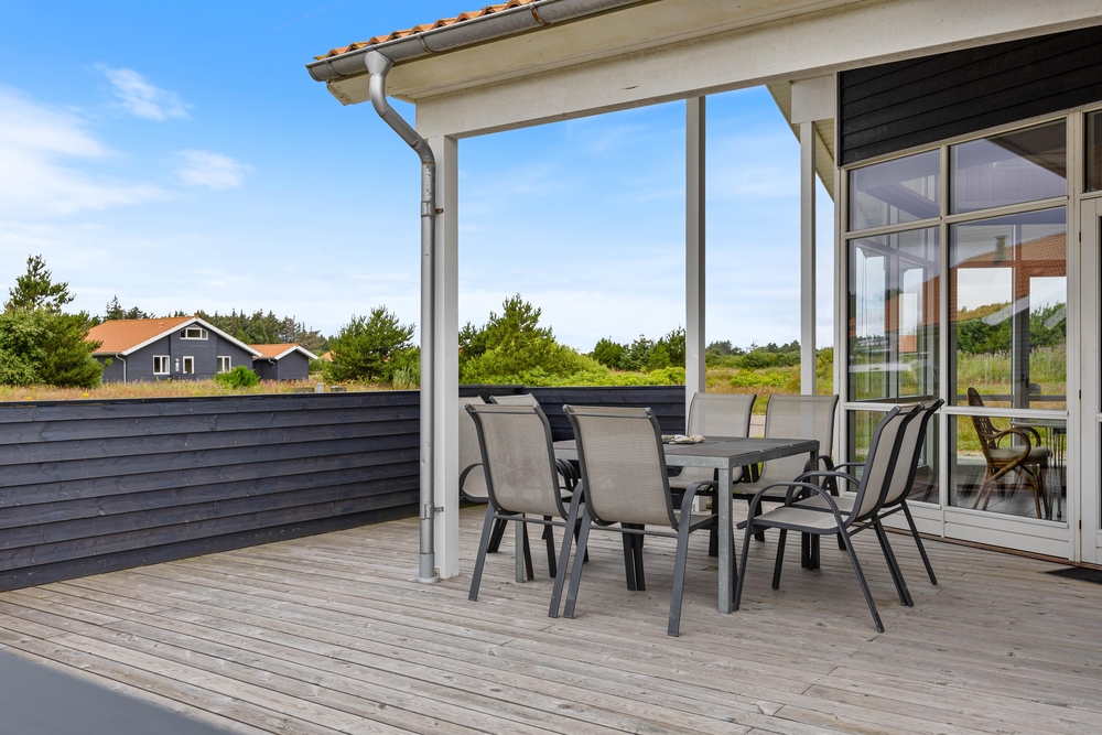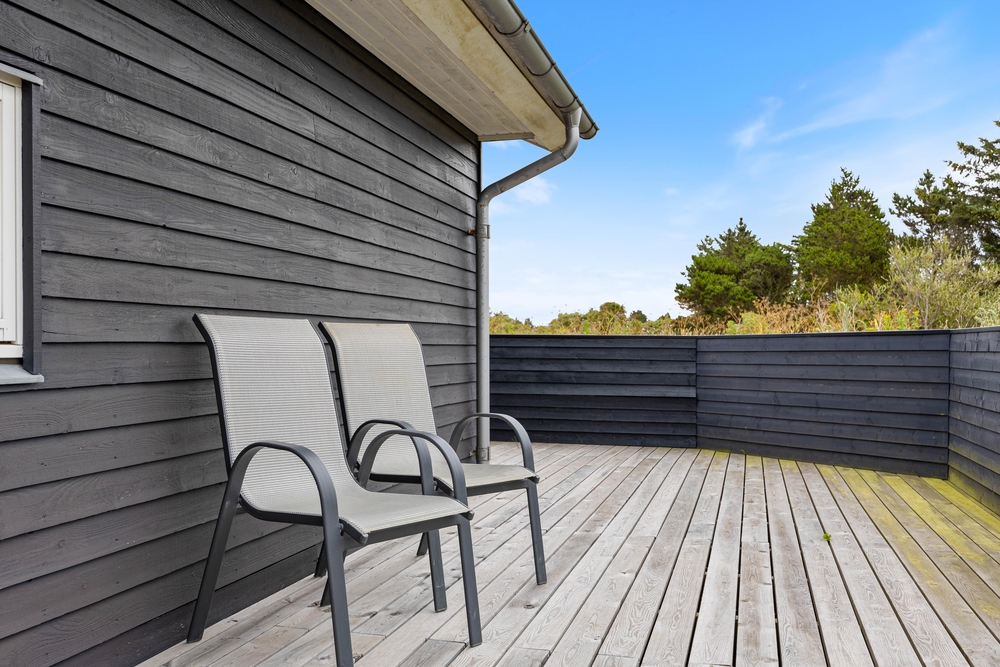 Die Terrasse des Hauses ist offen und teilweise überdacht. So habt ihr immer die Wahl zwischen einem schattigen Plätzchen oder aber ihr stellt euch einen Liegestuhl in die Sonne und genießt die warmen Strahlen auf eurer Haut. Sollte es trotz Sonne ein wenig zu frisch sein, kuschelt ihr euch einfach in eure Bettdecke und steckt nur die Nase heraus. Sonne tut einfach immer gut!