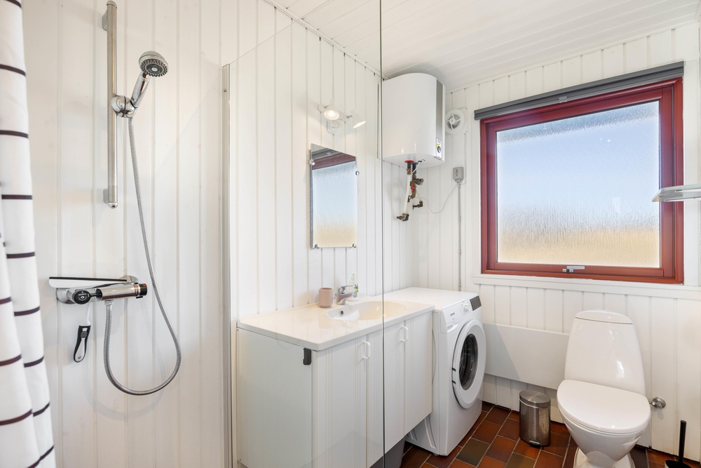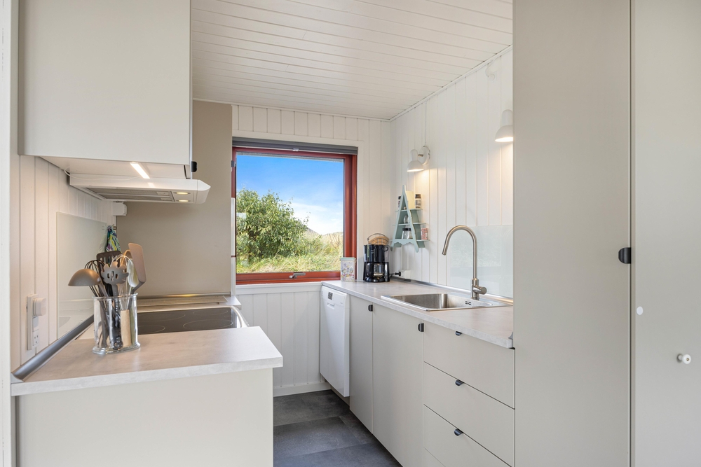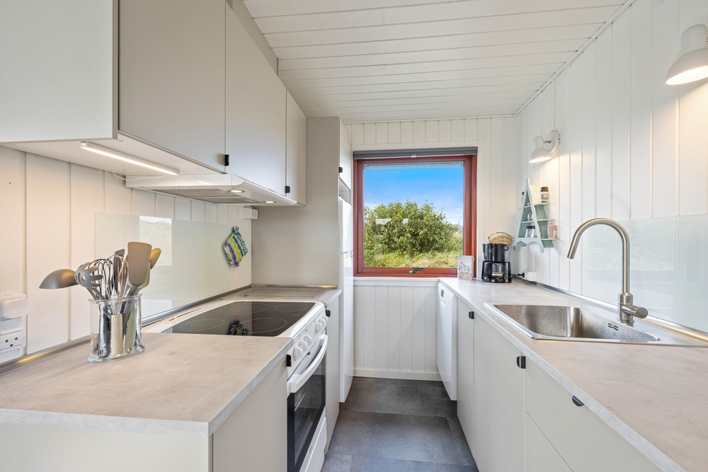 Die praktisch ausgestattete Küche ist komplett ausgestattet, um gemeinsam ein leckeres Menü zu zaubern. Auch eine Fußbodenheizung wurde hier installiert. Veranstaltet doch auch mal einen Abend mit skandinavischen Gerichten. Um den Abwasch kümmert sich danach der Geschirrspüler. Das Ferienhaus verfügt auch über eine energiesparende Wärmepumpe, mit der ihr die Räume Heizen könnt.