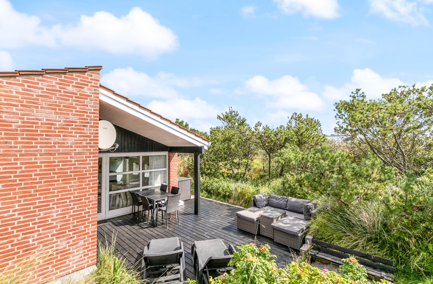 Schön eingerichtetes Ferienhaus, das auf einem hügeligen Naturgrund liegt. Das Haus besitzt eine geschlossene und teilweise überdachte Terrasse, perfekt für Familien mit Kleinkindern oder Hunden. Bis zu 2 Hunden dürfen mitgebracht werden.