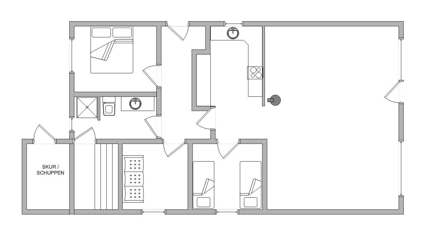 Das Ferienhaus ist gut und gemütlich eingerichtet, damit du hier einen schönen Urlaub verbringen kannst. Auf der geschlossenen Terrasse kannst du das schöne Naturgrundstück mit Heidenkraut genießen. Und nah am Ferienhaus hast du den Strand und das Naturschützgebiet.