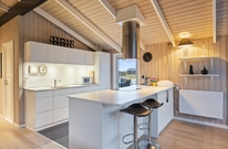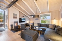 Durch die moderne Einrichtung und die großen Fenster wirkt das Haus freundlich und strahlt Urlaubs-Atmosphäre aus, nicht zuletzt durch den Kaminofen im Wohnbereich. Direkt am Kaminofen befindet sich eine kleine eingebaute Lese-Ecke, in der die Kinder bei einer Tasse Kakao aufwärmen und ein Buch lesen können. Währenddessen kann der Hobby-Koch sich ans Werk machen oder Pläne für künftige Ausflüge auf dem Sofa gemacht werden.
