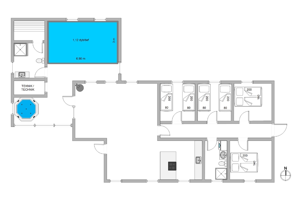 8 Personen und zwei Hunde sind in diesem schönen Haus im Fladsbjergvej zugelassen. Es gibt einen großen Pool und in der Poolabteilung befindet sich auch ein großer beheizter Whirlpool ? hier ist euch stundelanger Spaß garantiert. Im Poolraum wurde eine neue Luft-zu-Wasser Wärmepumpe installiert, die für eine energiefreundlichere Beheizung des Pools sorgt.