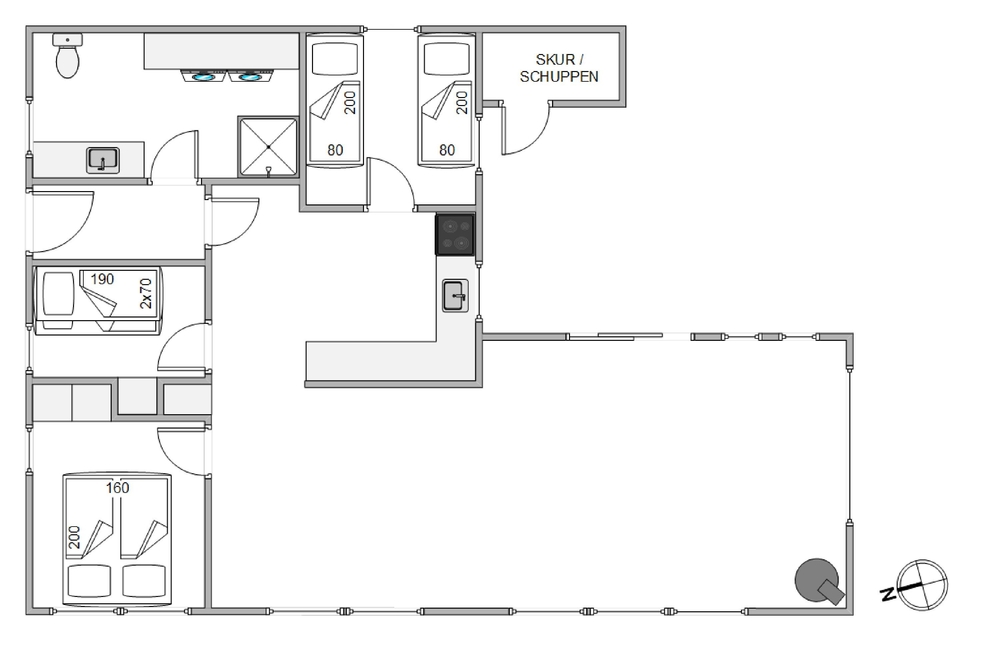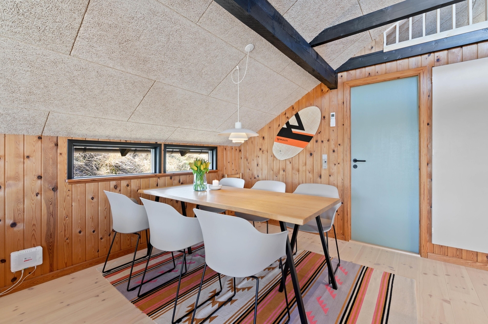 Bereits beim Betreten eures Ferienhauses im Fladsbjervej 58 kommt richtige Ferienhausstimmung auf. Die Holzvertäfelten Wände und die typische Einrichtung, die ein klassisches Ferienhaus ausmacht, wird euch in Kindheitserinnerungen schwelgen lassen. Das Haus teilt sich auf in einen Wohn-/Essbereich mit integrierter Küche, 3 Schlafzimmern und einem Badezimmer.