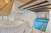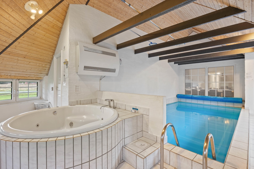 Im Ferienhaus gibt es einen schönen Poolbereich mit Swimmingpool, Whirlpool, Sauna und extra Badezimmer, wo du herrlich mit den Kindern herumplantschen kannst. Möchtest du dich entspannen, vielleicht bei Kerzenlich, gedämpfter Musik und kalten Drinks, kannst du dich deine eigene Wellness-Abteilung schaffen. Der Pool ist mit einer energiesparende Wärmepumpe ausgestattet.