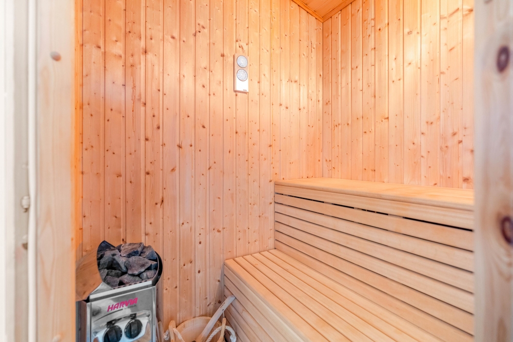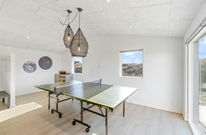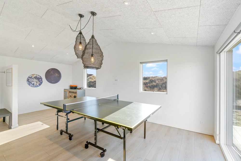 Der offene Wohn-Essbereich mit der modernen Küche ist der Dreh- und Angelpunkt dieses Ferienhauses. Hier kann die ganze Familie viel Zeit miteinander verbringen, ob beim gemeinsamen Kochen oder ihr bei euren Spieleabenden den Champion des Urlaubs kürt. Die Küche hat eine Spülmaschine, sodass keiner sich um den Abwasch kümmern muss. So habt ihr viel Zeit eure nächsten Aktivitäten in Ruhe zu planen. Genießt gemütliche Abende vor dem Holzofen oder entspannt euch in der hauseigenen Sauna. Für sportliche Aktivitäten steht euch ein eigener Bereich mit Tischtennis zur Verfügung.
