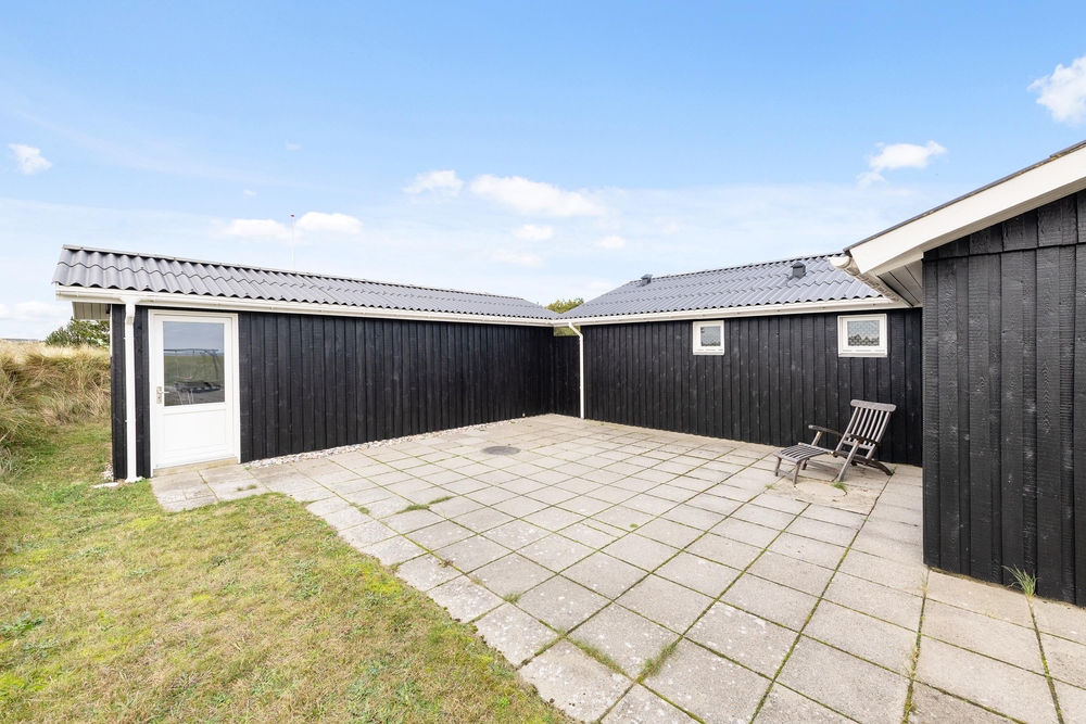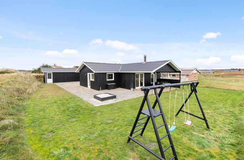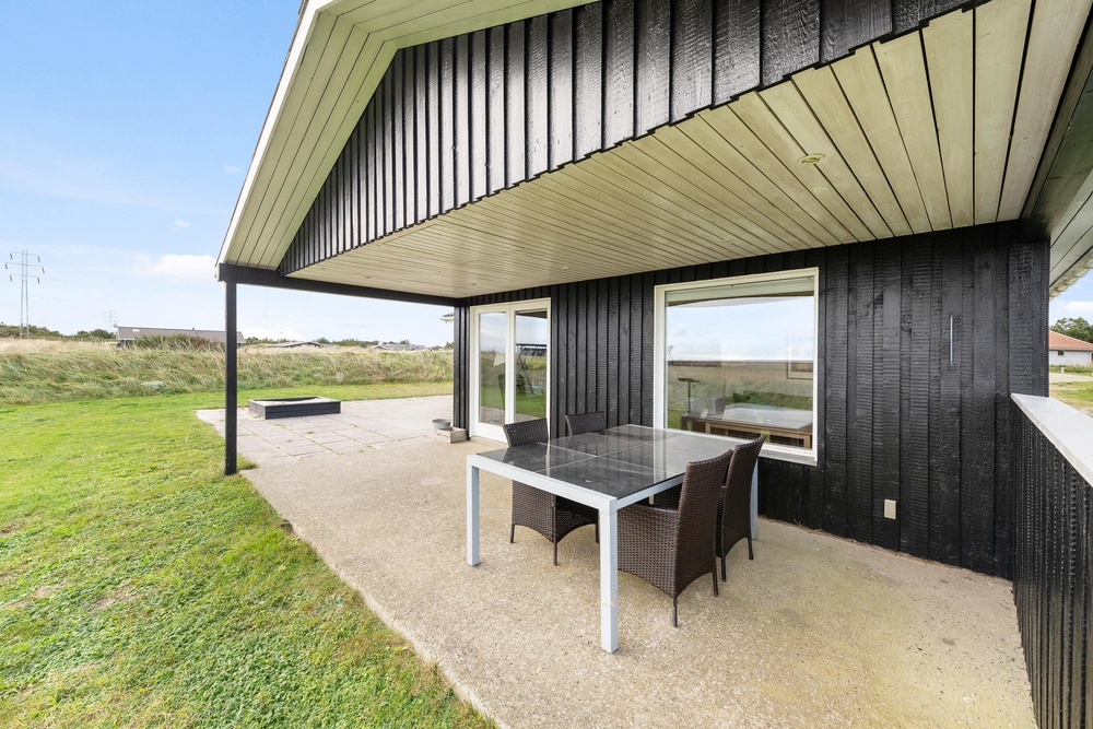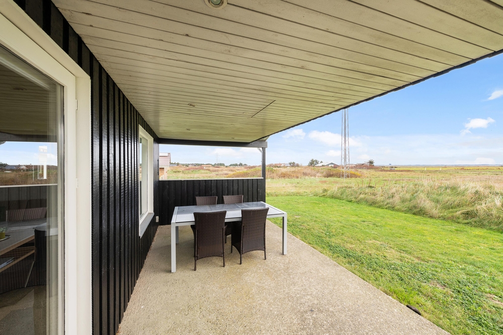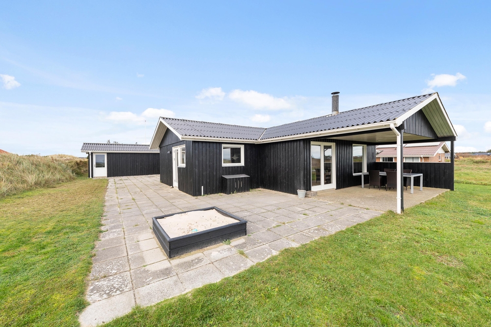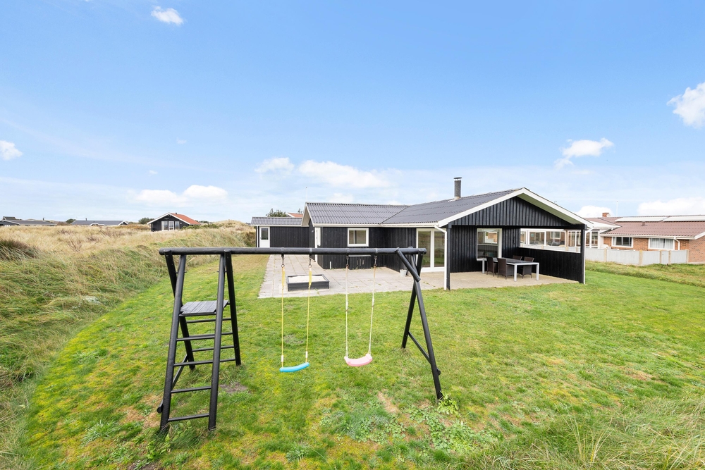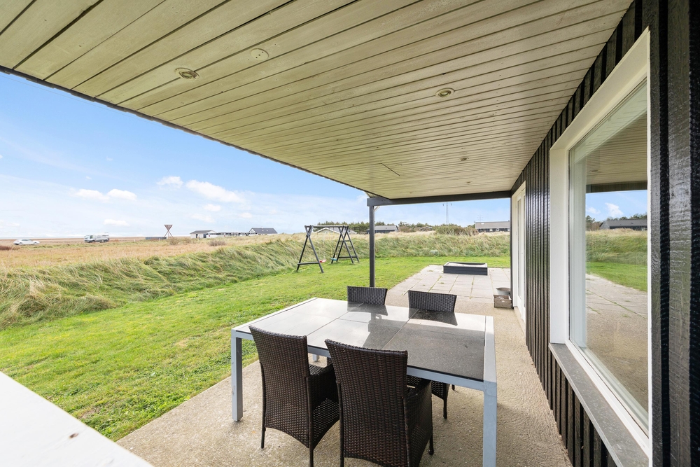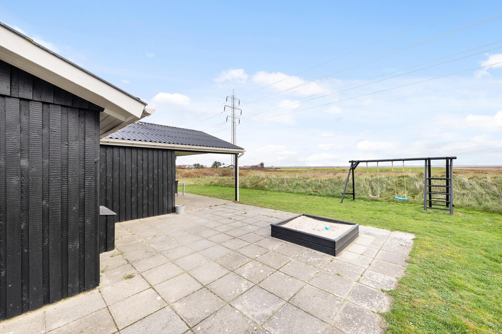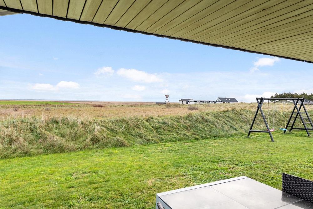 Genießt die schöne Aussicht von der Terrasse aus auf den Fjord, während die Kinder schaukeln, Sandburgen bauen oder mit den Hunden auf dem großen Grundstück herumtollen. Die Terrasse hat einen geschützen und überdachten Bereich, so dass ihr dort Unterschlupf findet, um so viel Zeit wie möglich an der frischen Luft verbringen zu können. Vielleicht habt ihr die Möglichkeit, Fahrräder mitzubringen? Dann kann das Auto in die große geschlossene Garage gestellt werden und den ganzen Urlaub stehenbleiben, denn ganz Holmsland Klit zeichnet sich durch schöne Rad- und Wanderwege aus und alle wichtigen Dinge können per Pedes erreicht werden.