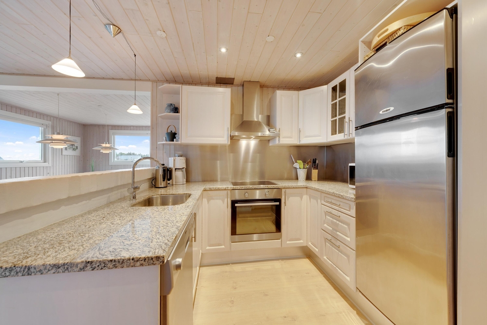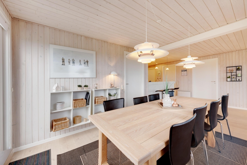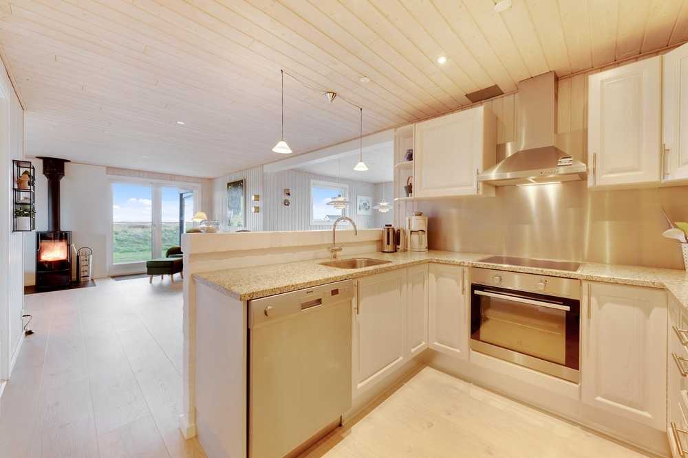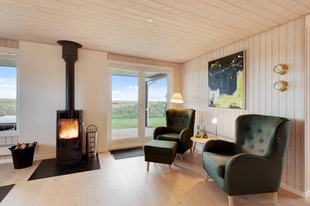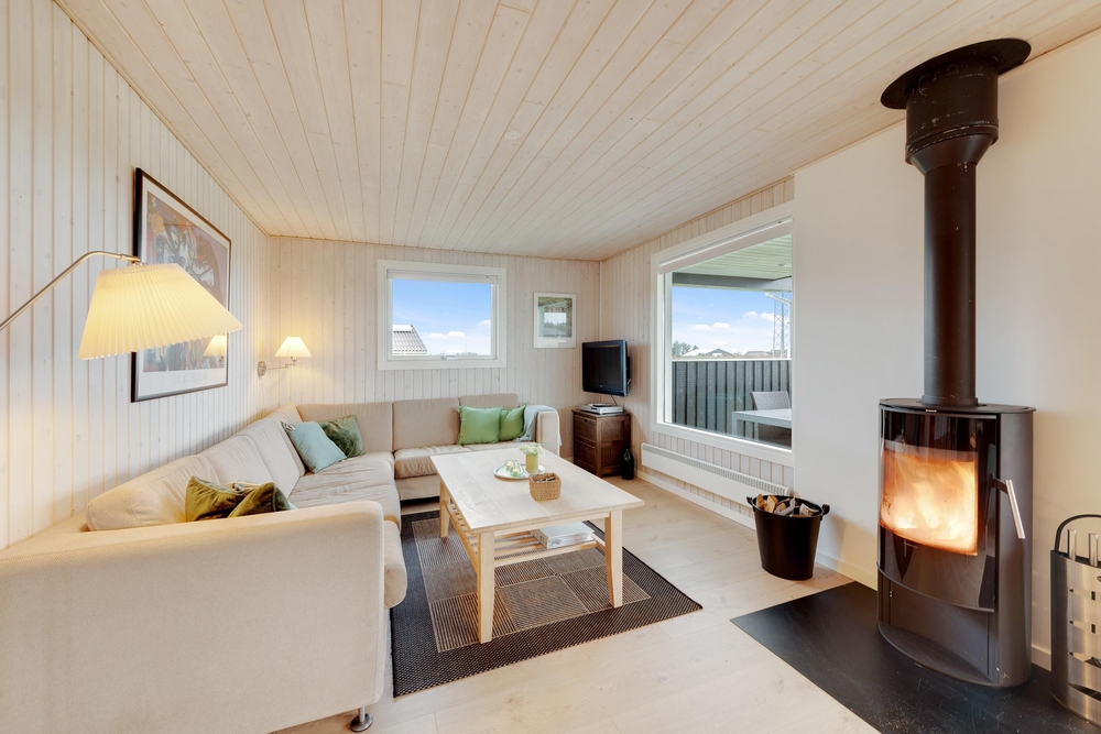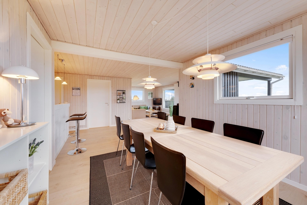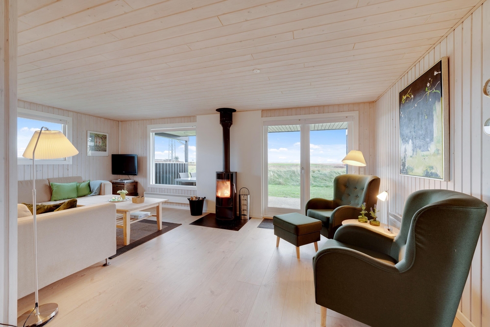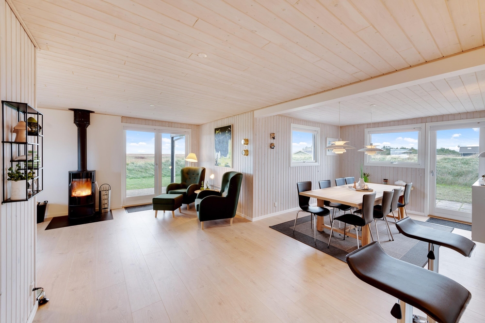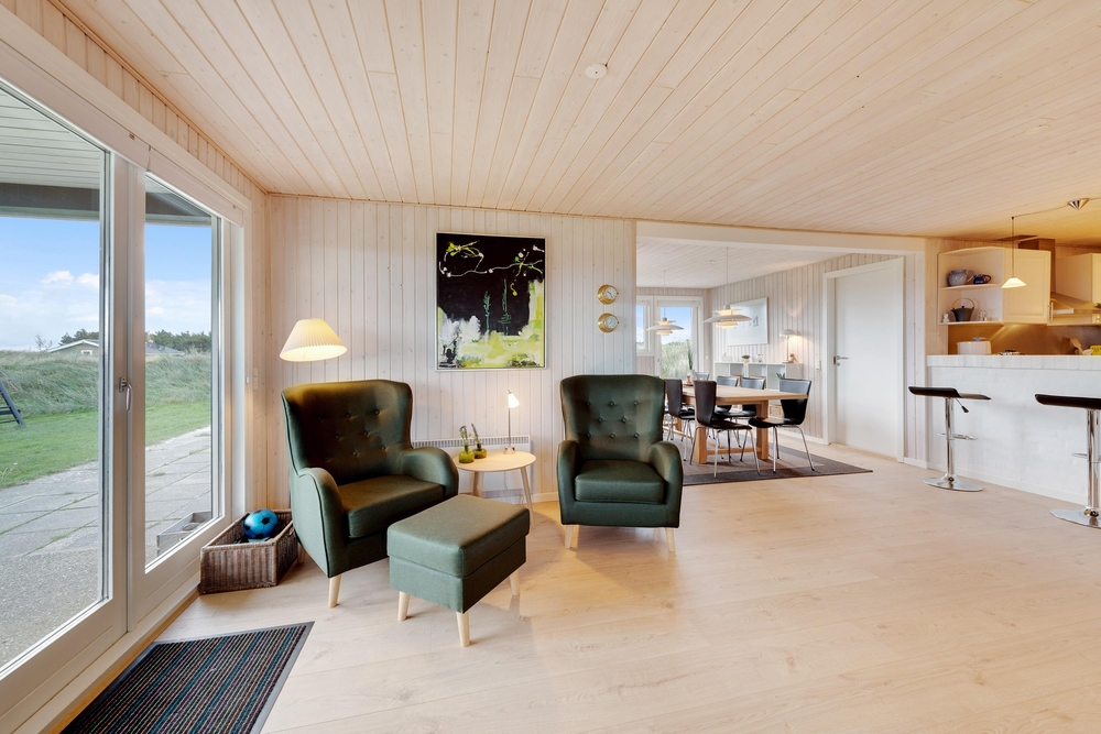 Genießt die schöne Aussicht von der Terrasse aus auf den Fjord, während die Kinder schaukeln, Sandburgen bauen oder mit den Hunden auf dem großen Grundstück herumtollen. Die Terrasse hat einen geschützen und überdachten Bereich, so dass ihr dort Unterschlupf findet, um so viel Zeit wie möglich an der frischen Luft verbringen zu können. Vielleicht habt ihr die Möglichkeit, Fahrräder mitzubringen? Dann kann das Auto in die große geschlossene Garage gestellt werden und den ganzen Urlaub stehenbleiben, denn ganz Holmsland Klit zeichnet sich durch schöne Rad- und Wanderwege aus und alle wichtigen Dinge können per Pedes erreicht werden.