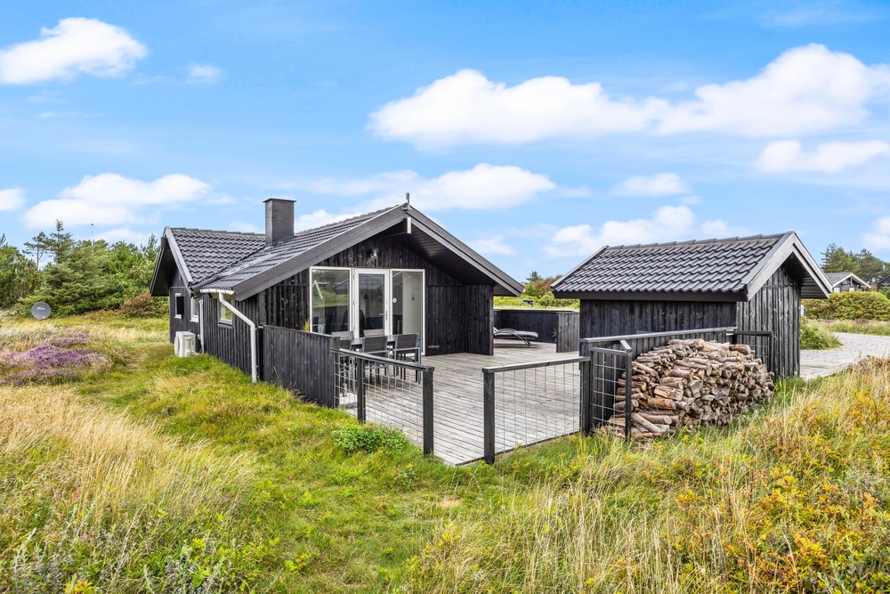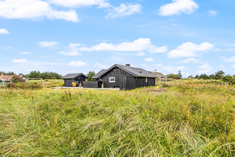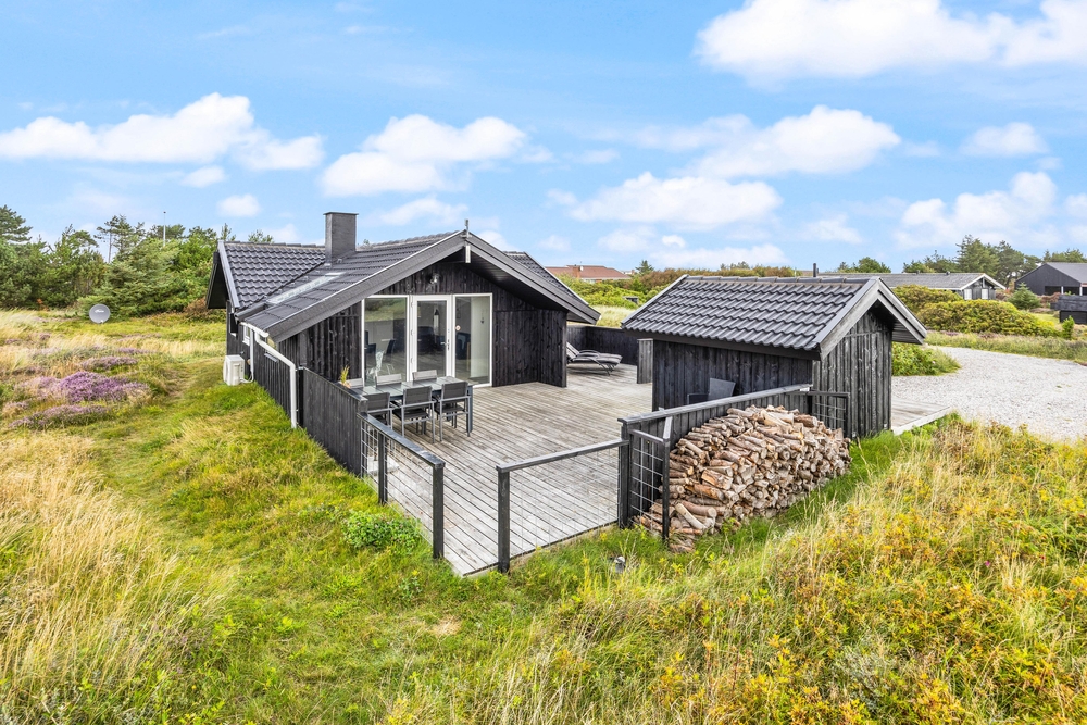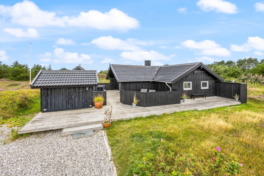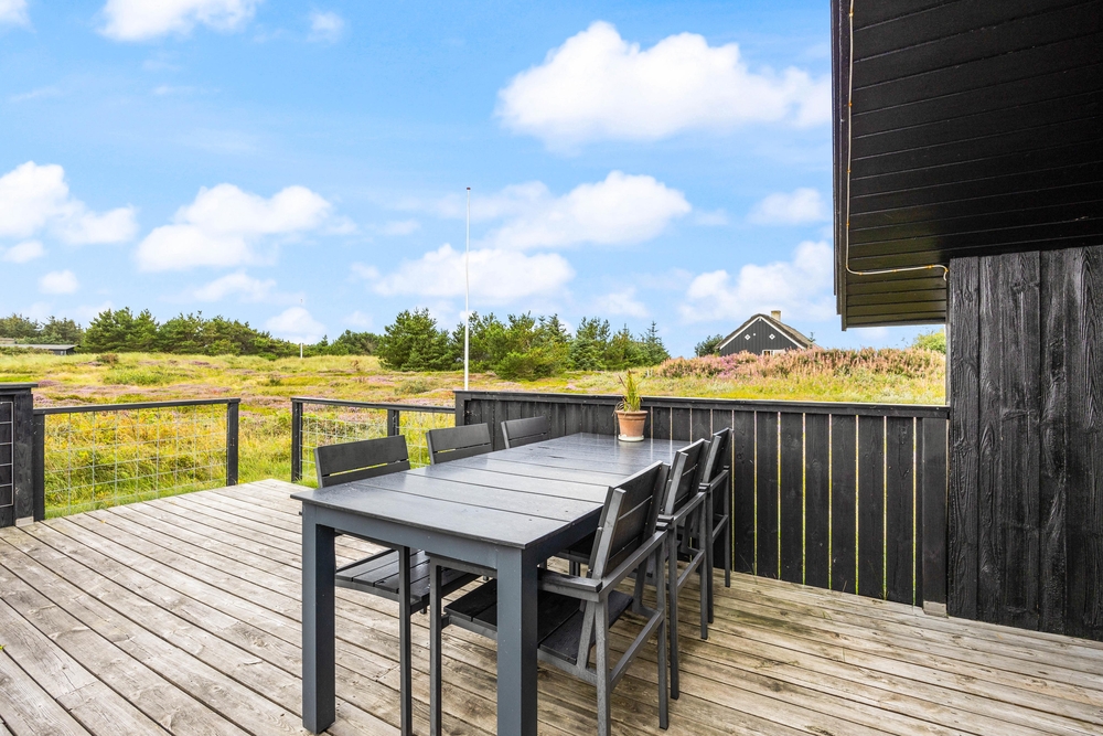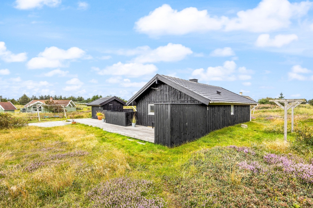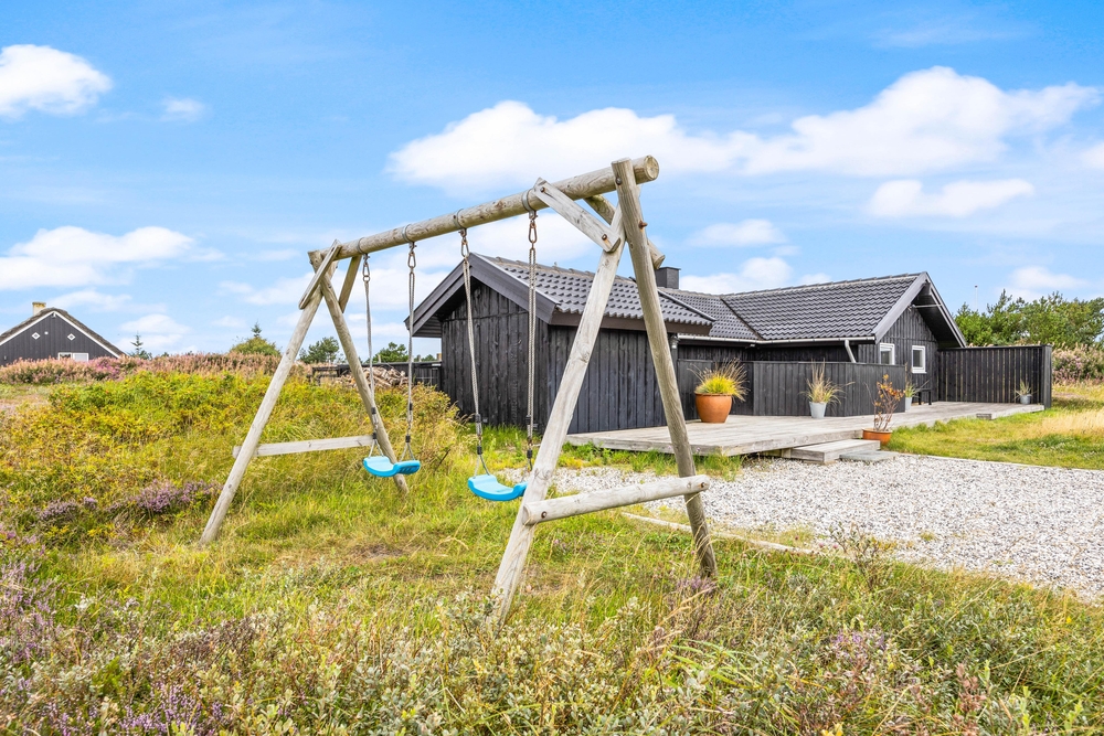 Das Ferienhaus liegt auf einem 2466 m2 großen, mit Heidekraut bewachsenen Naturgrundstück, nur 800 Meter vom kilometerlangen Sandstrand und der atemberaubenden Nordsee entfernt. Vom Wohnzimmer aus habt ihr direkten Zugang zu einer schönen, großen Holzterrasse, die abgeschirmt und teilweise umschlossen ist. Es gibt Gartenmöbel, Liegestühle und natürlich einen Grill. Wenn es dunkel wird, ist der perfekte Zeitpunkt, um den Grill anzuwerfen und den Grillmeister sein Können unter Beweis stellen zu lassen und ein leckeres Essen für die ganze Familie zuzubereiten. Für unsere kleinen Gäste gibt es eine Schaukel und viel Platz zum Spielen.