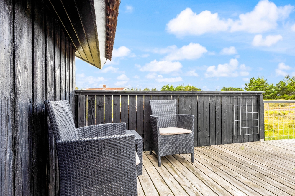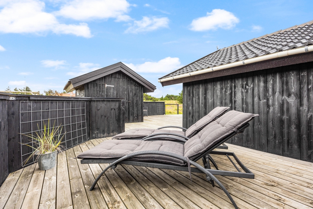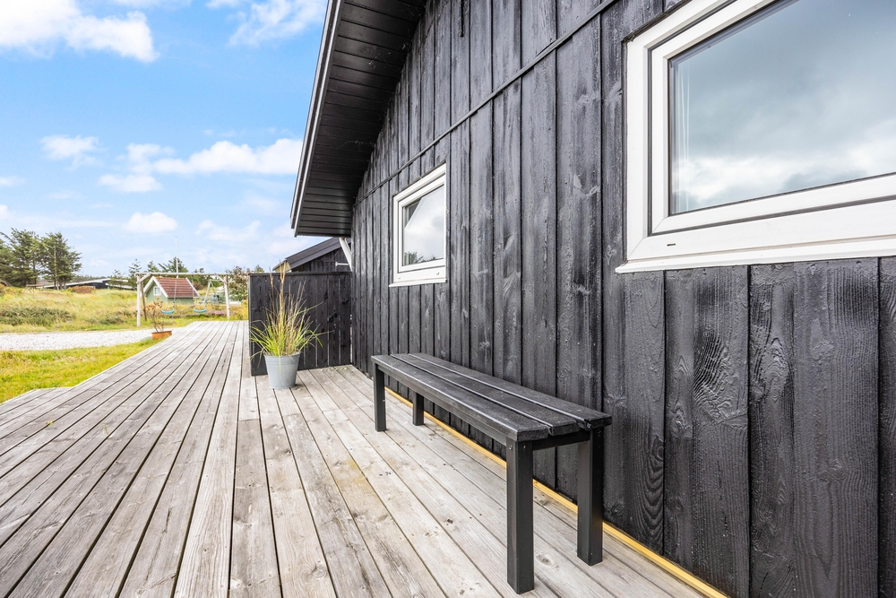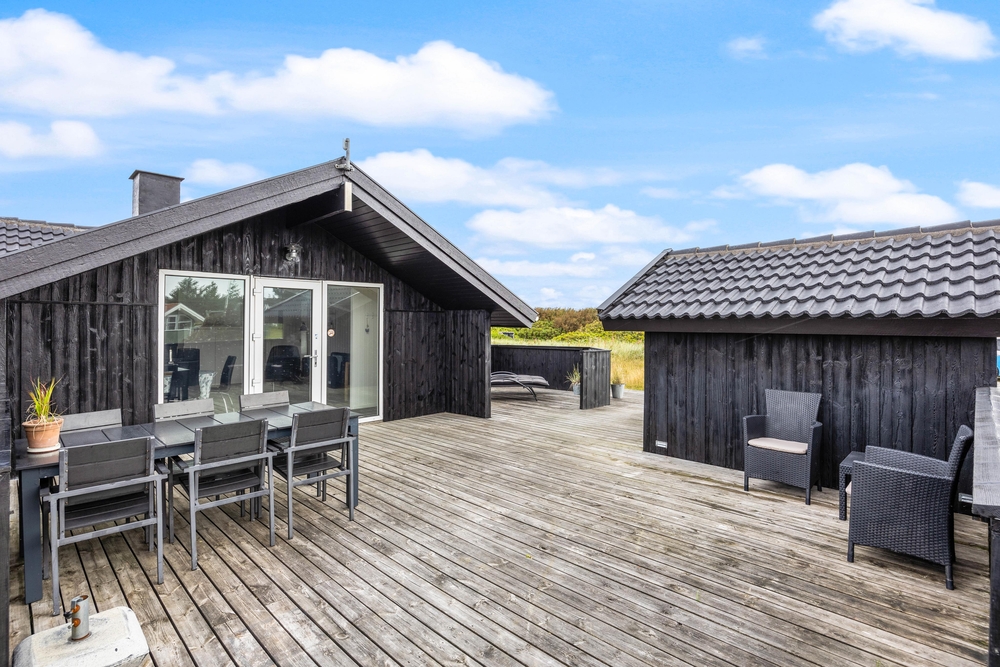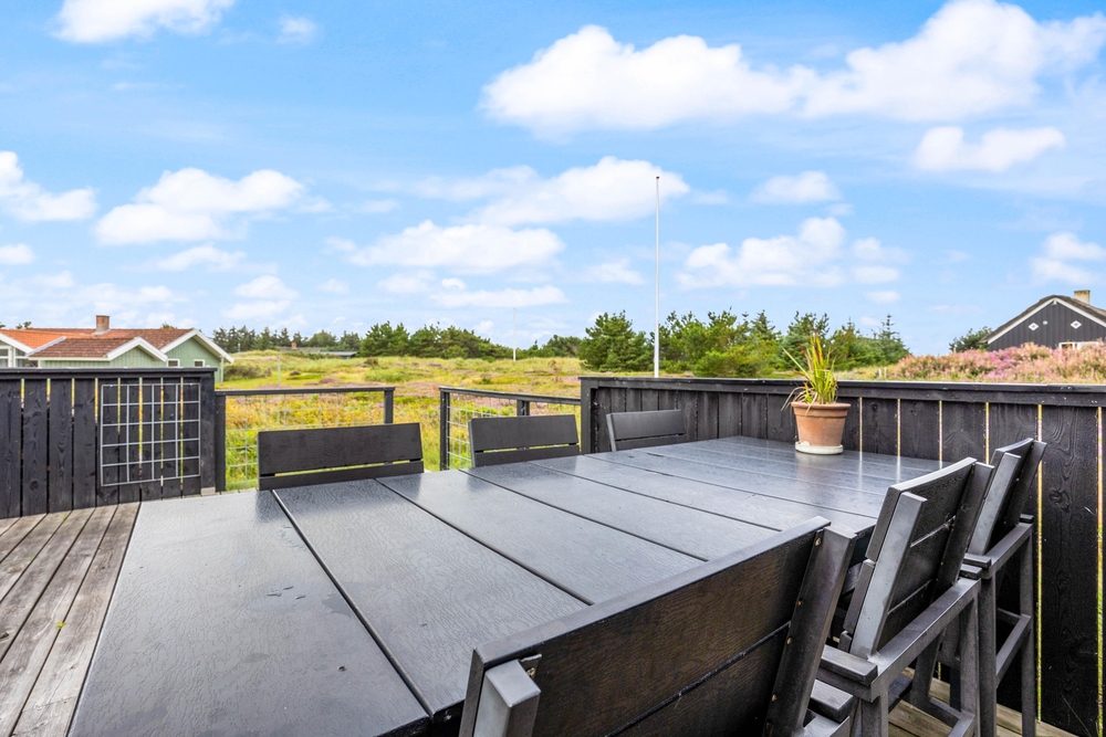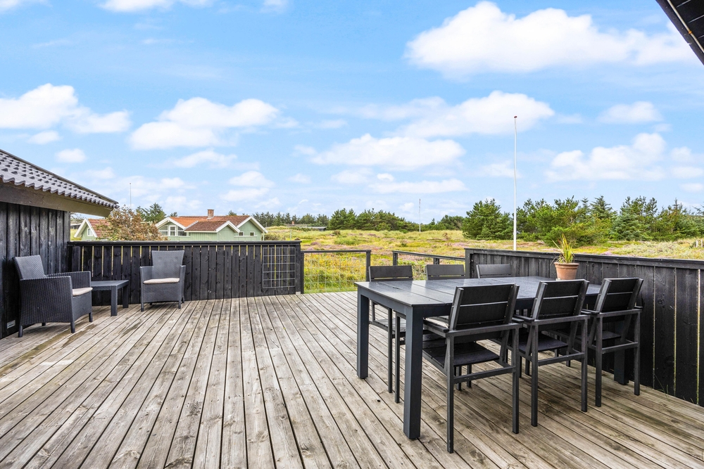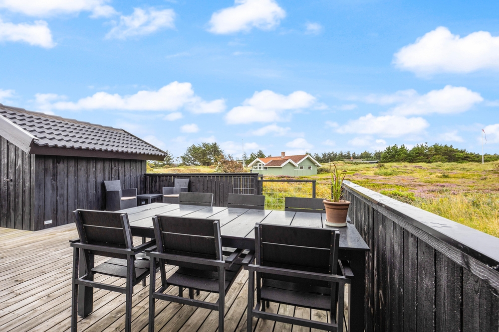Das Ferienhaus liegt auf einem 2466 m2 großen, mit Heidekraut bewachsenen Naturgrundstück, nur 800 Meter vom kilometerlangen Sandstrand und der atemberaubenden Nordsee entfernt. Vom Wohnzimmer aus habt ihr direkten Zugang zu einer schönen, großen Holzterrasse, die abgeschirmt und teilweise umschlossen ist. Es gibt Gartenmöbel, Liegestühle und natürlich einen Grill. Wenn es dunkel wird, ist der perfekte Zeitpunkt, um den Grill anzuwerfen und den Grillmeister sein Können unter Beweis stellen zu lassen und ein leckeres Essen für die ganze Familie zuzubereiten. Für unsere kleinen Gäste gibt es eine Schaukel und viel Platz zum Spielen.