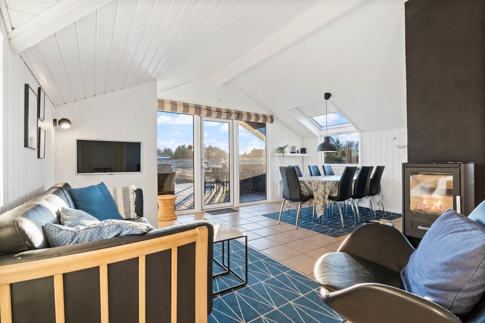 Das Ferienhaus ist hell und stilvoll eingerichtet. Durch die großen Fenster im Wohnbereich habt ihr nicht nur einen tollen Blick auf die Landschaft, sondern auch direkten Zugang zur Terrasse. An kühleren Tagen und nach einem erlebnisreichen Urlaubstag könnt ihr es euch auf dem Sofa gemütlich machen und gemeinsam einen Film schauen während neben euch das Feuer des Kamins knistert und lodert. Über den Fernseher empfangt ihr deutsches Fernsehen via Satellit. Die offene Küche ist funktionell und hat alles, war ihr braucht, um euch leckere Mahlzeiten zu zaubern. Es gibt auch einen Geschirrspüler, der euch den lästigen Abwasch erspart und mehr gemeinsame Zeit verschafft. Die gewonnene Zeit könnt ihr dann für einen lustigen Spieleabend an dem großen Esstisch nutzen. Die moderne und energiesparende Luft-zu-Luft Wärmepumpe sorgt das ganz Jahr über für angenehme Temperaturen. Zur weiteren Ausstattung gehört gratis Internet.