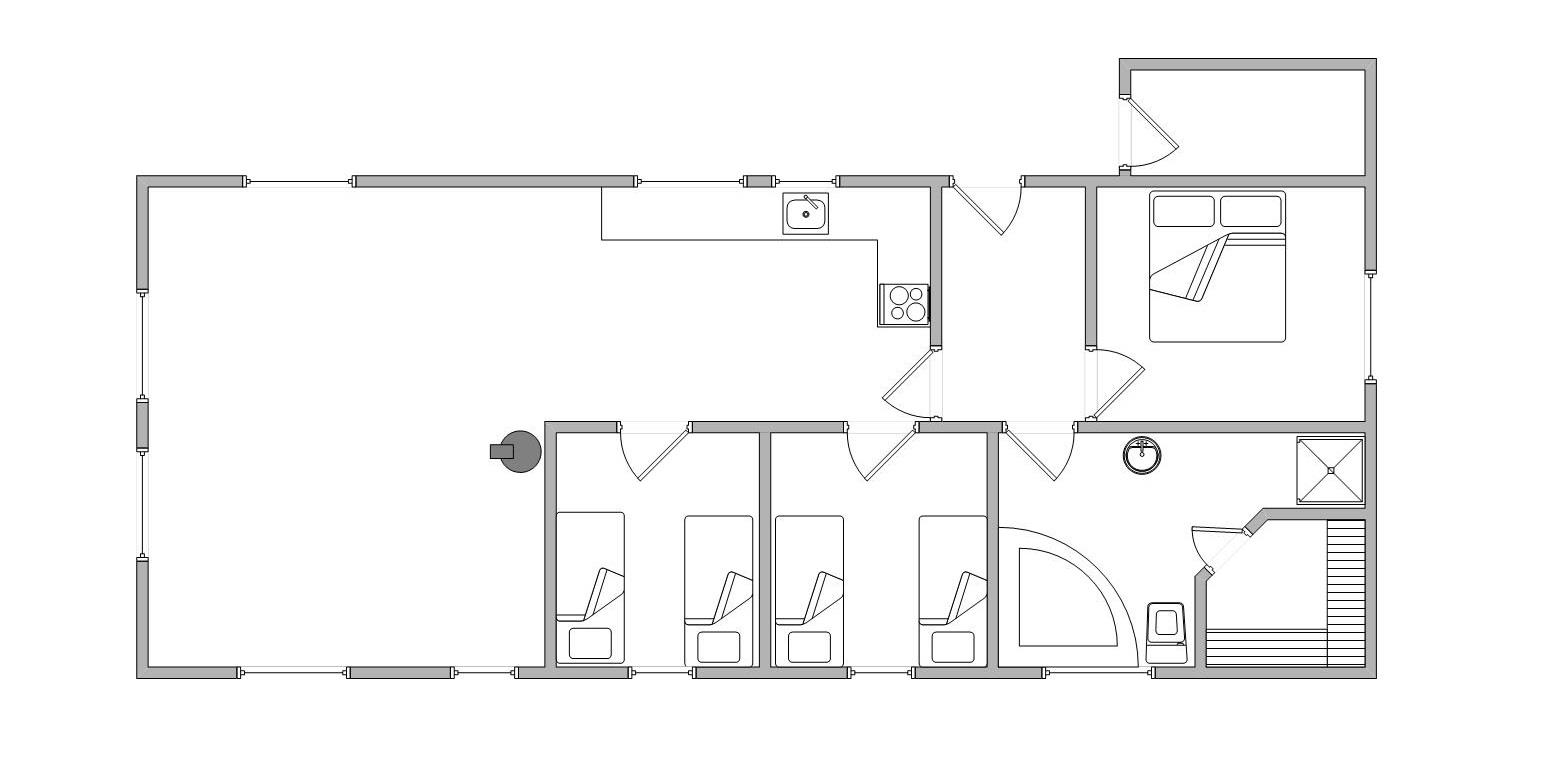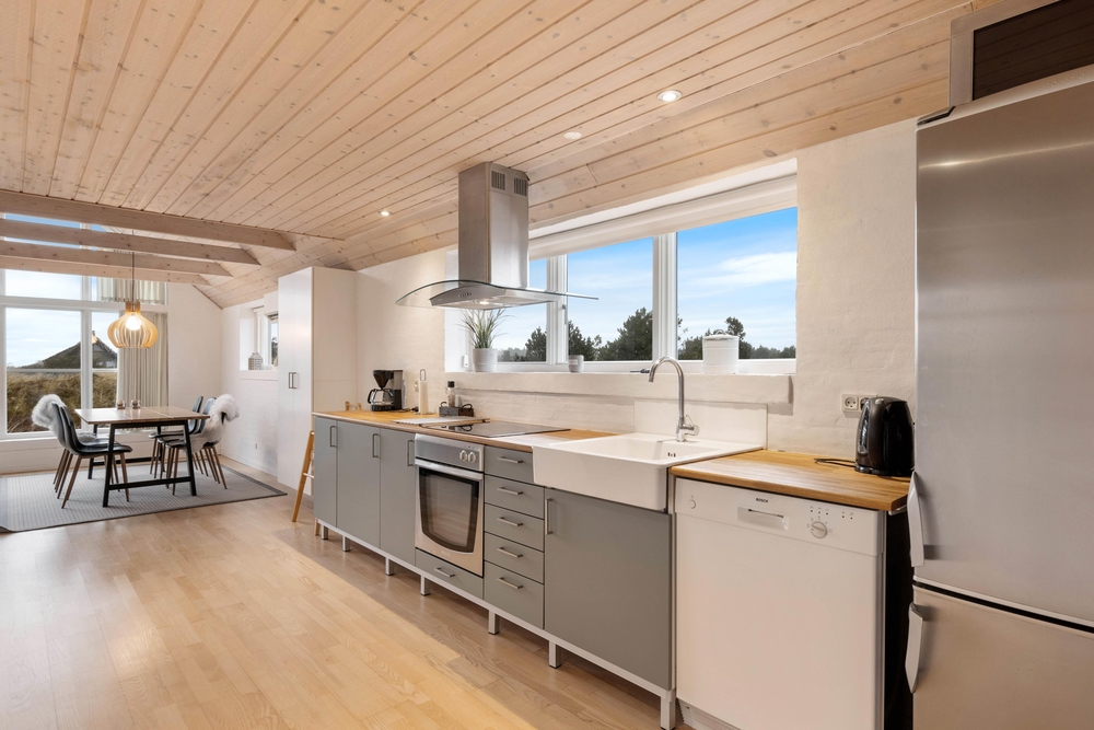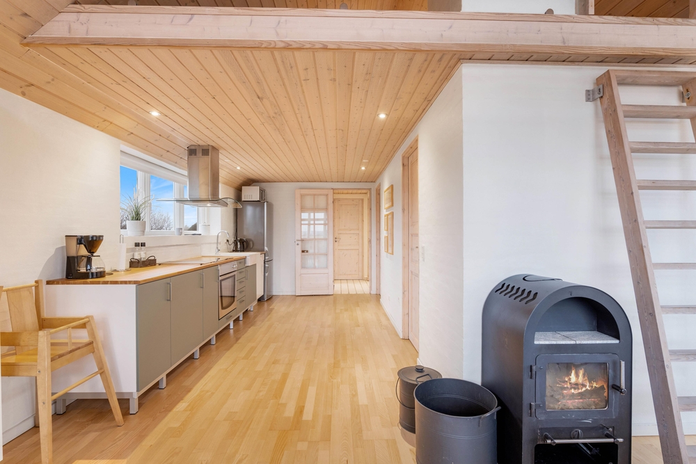 Das Herz des Hauses ist die offene Küche, verbunden mit dem Ess- und Wohnbereich. Hier könnt ihr abends vor dem SMART-TV entspannen und den Tag zusammen ausklingen lassen. Vor dem knisternden Kamin schmeckt ein leckeres Essen umso besser und die hohen Decken sowie die sichtbaren Balken verleihen dem Raum einen ganz besonderen Charme. Die 105 m2 verteilen sich auf den offenen Wohn- und Essbereich, die offene Küche, das großzügige Badezimmer sowie 3 Schlafzimmer. Vom Wohnbereich gelangt man auf die Terrasse. Hier könnt ihr tagsüber die Sonne genießen und abends den Grill anmachen.