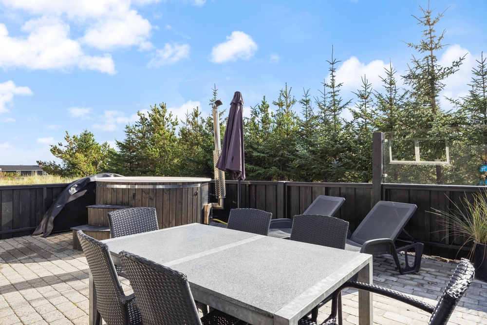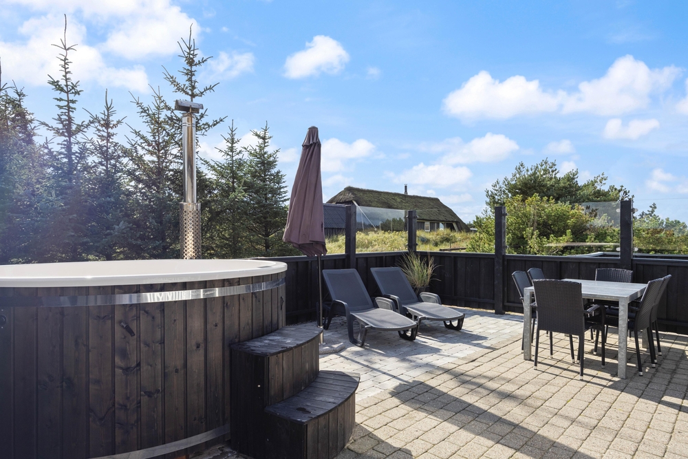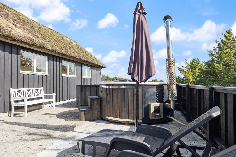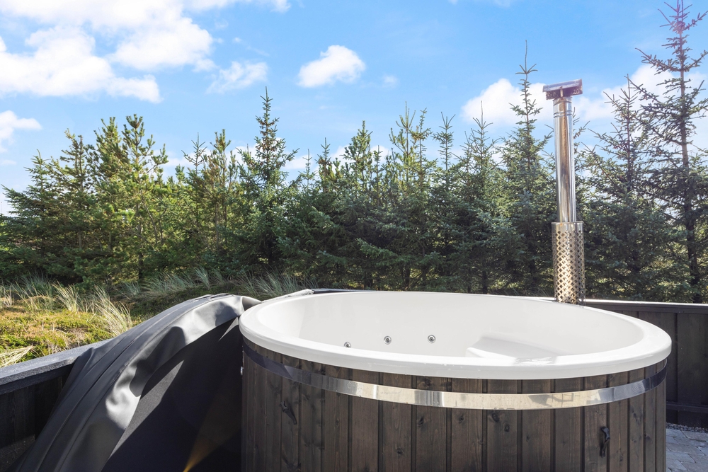 Das 2463 m2 große Grundstück liegt in der wunderschönen Natur in den Dünen von Søndervig. Nach einem langen Tag an der frischen Luft könnt ihr abends die Füße in der Sauna oder dem Whirlpool hochlegen und neue Energie tanken. Für alle die sich gerne draußen entspannen, gibt es eine Badetonne, in der ihr sowohl das herrlich warme Wasser und die frische Nordseeluft genießen könnt. Die Badetonne ist mit LED-Lichtern und einem Massagesystem mit 12 Luftdüsen ausgestattet ? ganz sicher ein besonderes Highlight und lasst es euch einfach so richtig gut gehen.