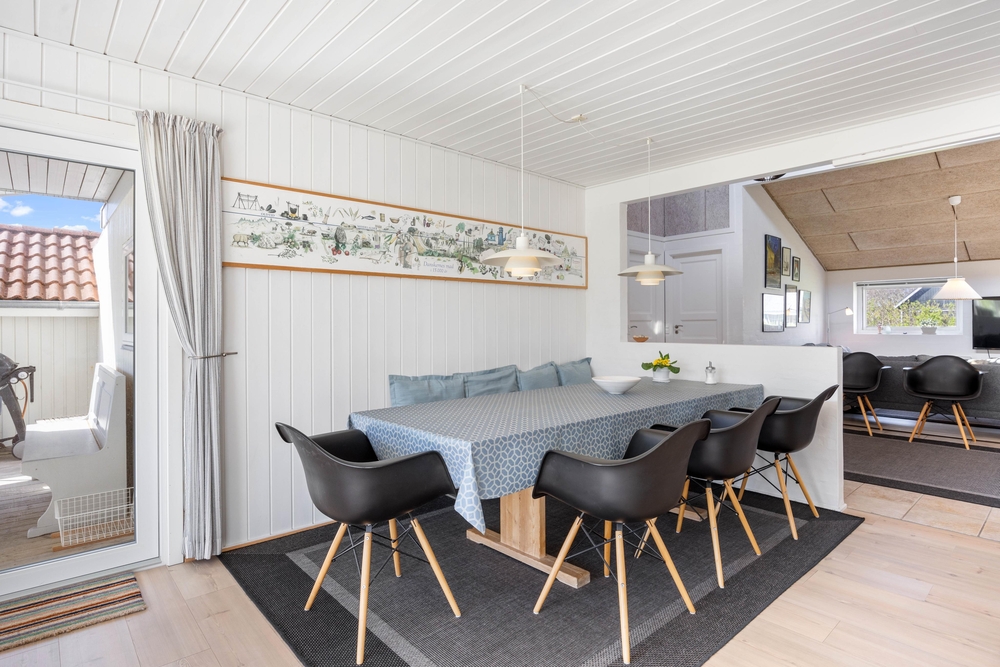 Möchtet ihr einen Familienurlaub in Søndervig machen? Dann ist das Ferienhaus im Frans Julius Vej 6 eine gute Wahl für euch. Das Ferienhaus bietet euch genügend Platz für bis zu 8 Personen und euer Hund ist hier ebenfalls herzlich willkommen. Für Spiel und Spaß sorgt die Tischtennisplatte im Ferienhaus, während die Badetonne auf der Terrasse für Entspannung und tolle Erlebnisse sorgt. Eure Kinder werden sich sicher über den Spielturm, die Schaukel und die Sandkiste im Garten freuen.