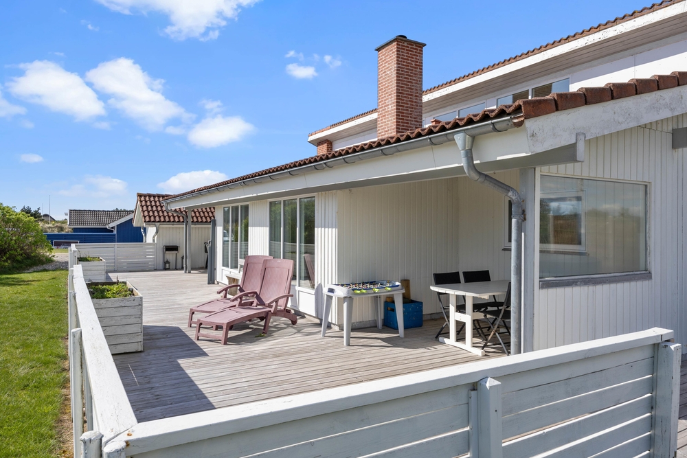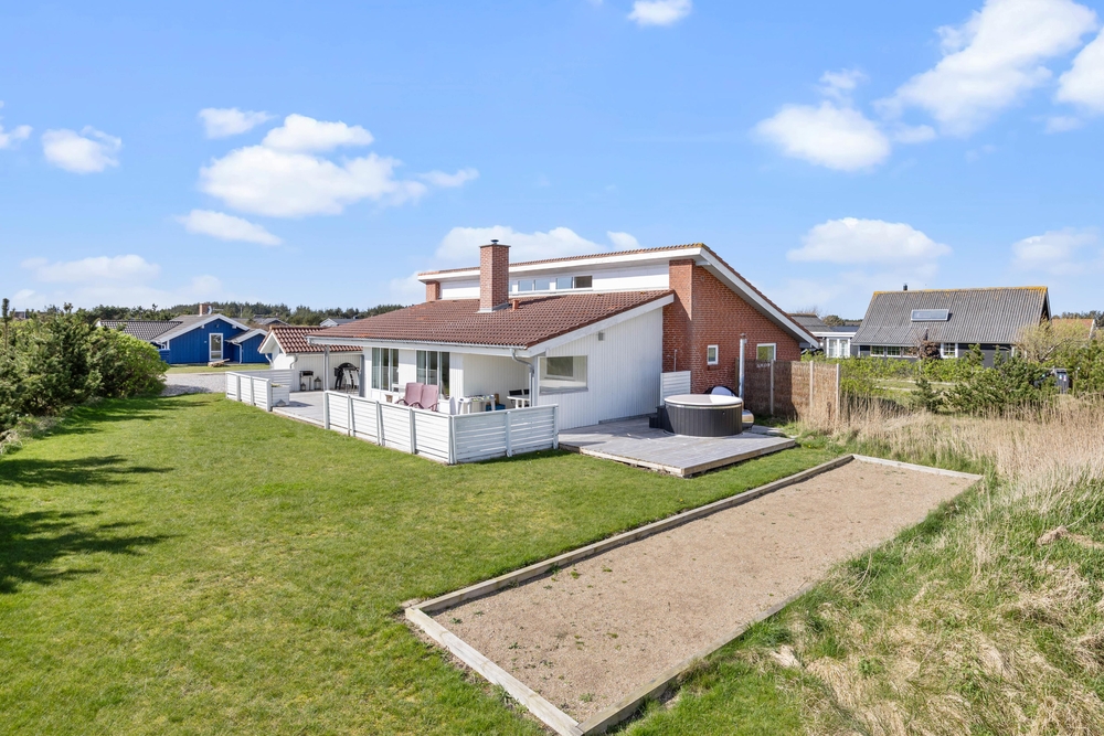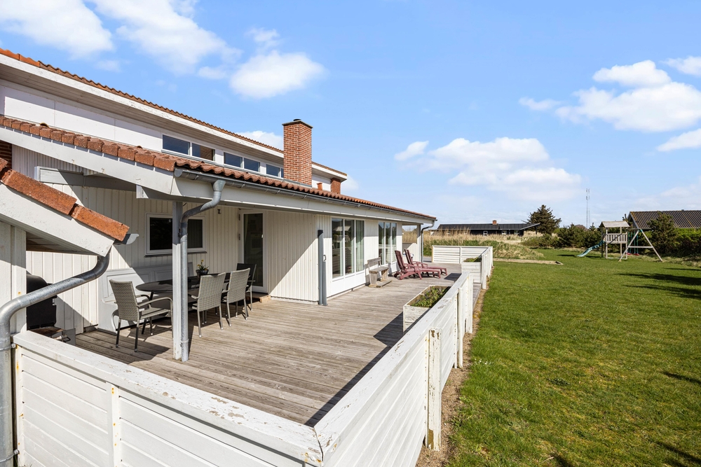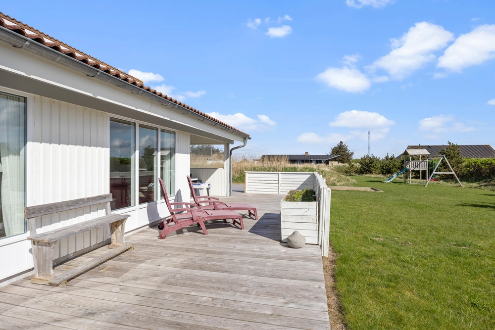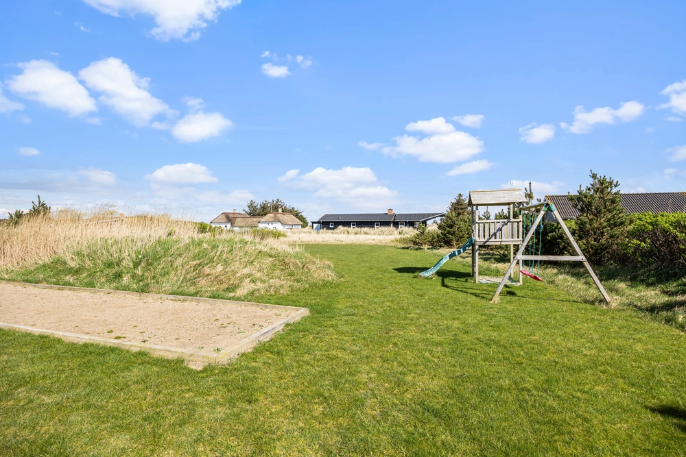 Das Ferienhaus im Frans Julius Vej 6 in Søndervig steht auf einem ca. 2405m2 Rasengrundstück und bietet somit genügend Platz zum Spielen und Toben für eure Kinder und euren Hund. Der Außenbereich des Ferienhauses ist für eure Kinder sicherlich ein besonderes Highlight, da es hier eine Schaukel, einen Spielturm und eine Sandkiste gibt, die für Spiel und Spaß bei den Kleinen sorgen, während ihr es euch auf der Terrasse des Ferienhauses gemütlich macht. Ein Gasgrill für einen leckeren Grillabend steht euch auch zur Verfügung.