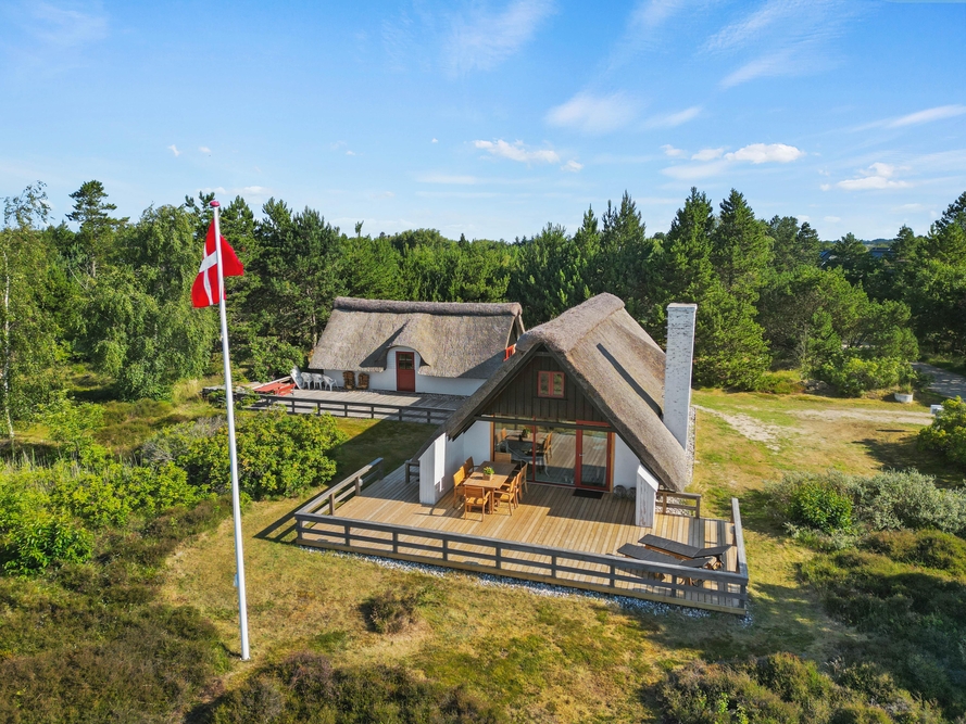 Auf einem schönen Naturgrundstück im Norden von Rømø lädt dieses reetgedeckte Ferienhaus zu einem entspannten Urlaub ein. Das Haus bietet Platz für 6 Personen, und auch der vierbeinige Mitreisende ist hier willkommen. Sowohl das Haus als auch die schöne Terrasse und die ruhige Umgebung laden hier zu vielen gemütlichen Stunden ein.