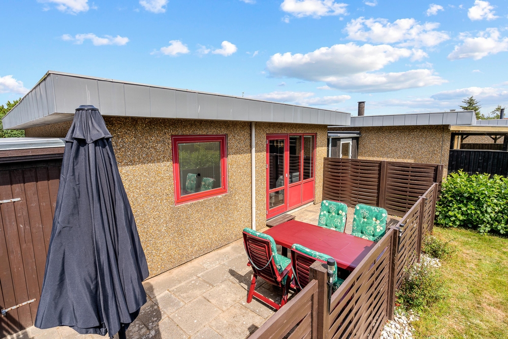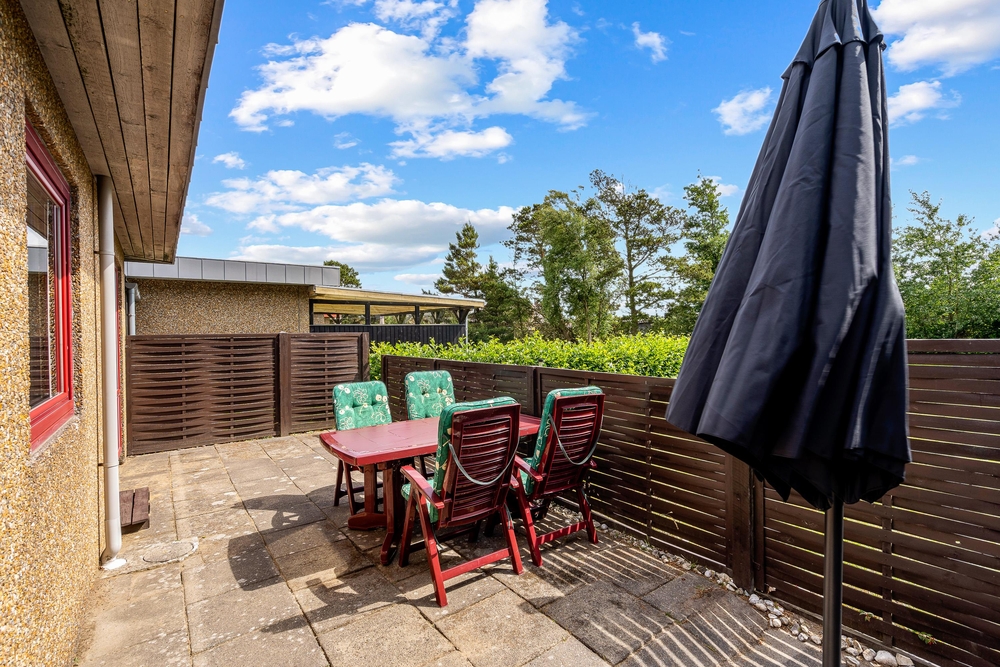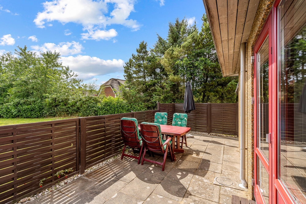 Die sonnigen, warmen Ferientage solltet Ihr auf der eingezäunten Terrasse des Ferienhauses im Fyrgården 4 genießen. Liegestühle und Gartenmöbel stehen für die Erholung an der frischen Luft bereit.