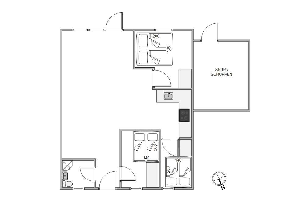 Ein Schlafzimmer verfügt über ein Doppelbett 180×200 cm, die beiden anderen Betten sind 140×200 cm gross. Hier könnt ihr Euch ausschlafen, oder Euch mit einem spannenden Buch zurückziehen und die Ruhe genießen.