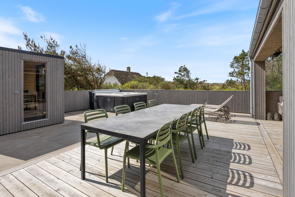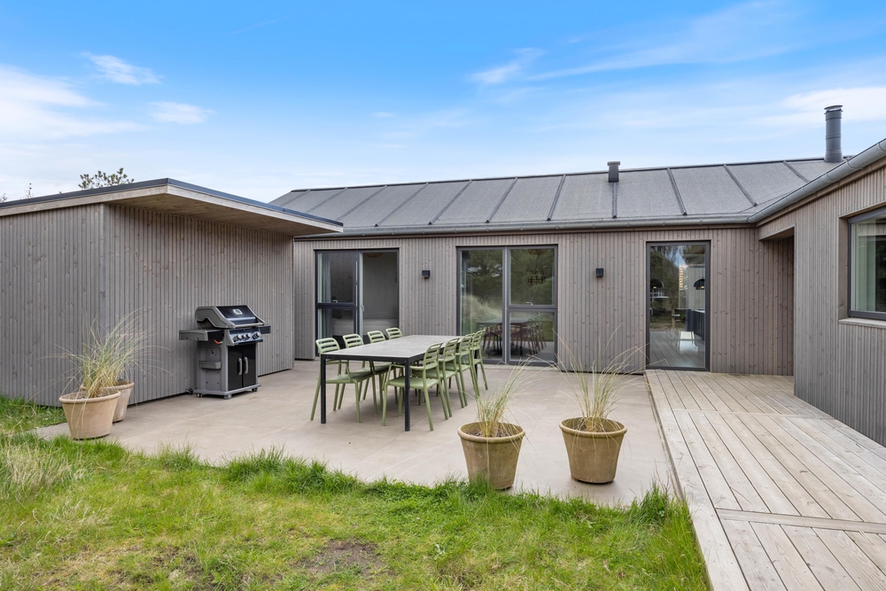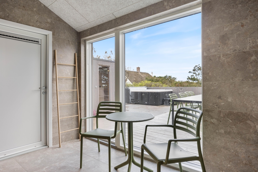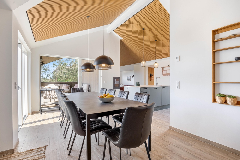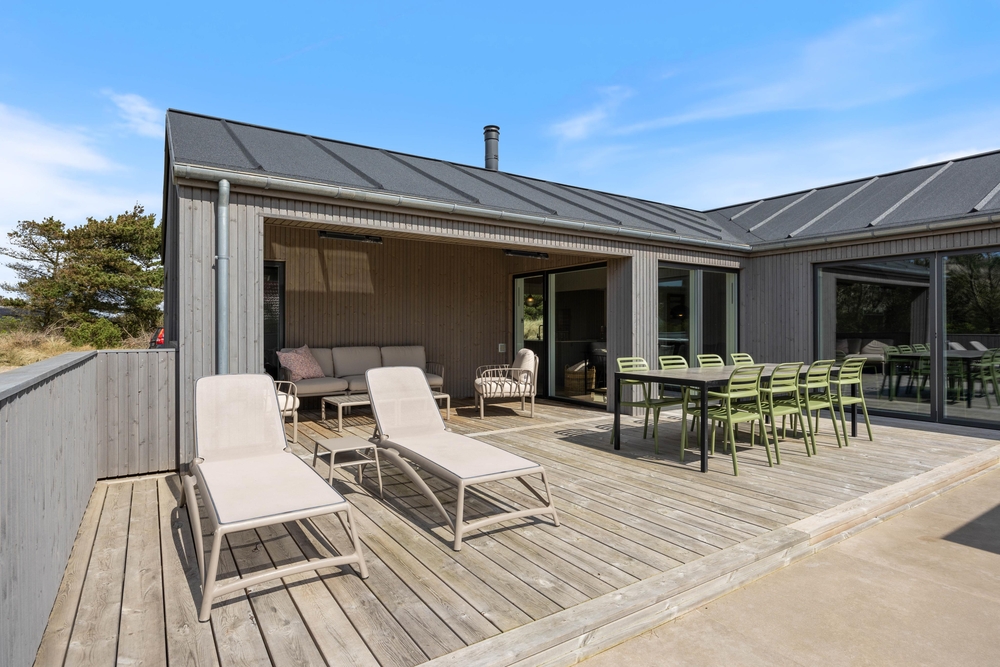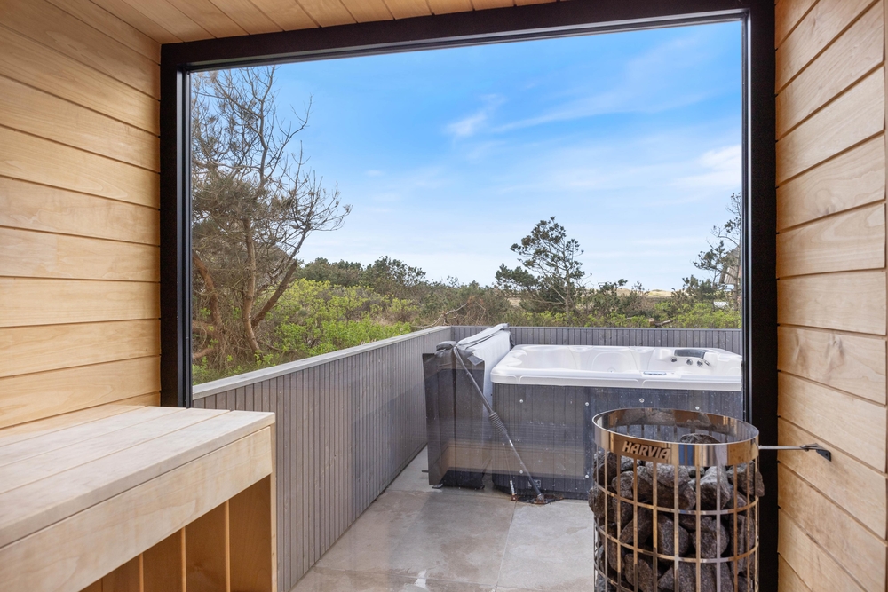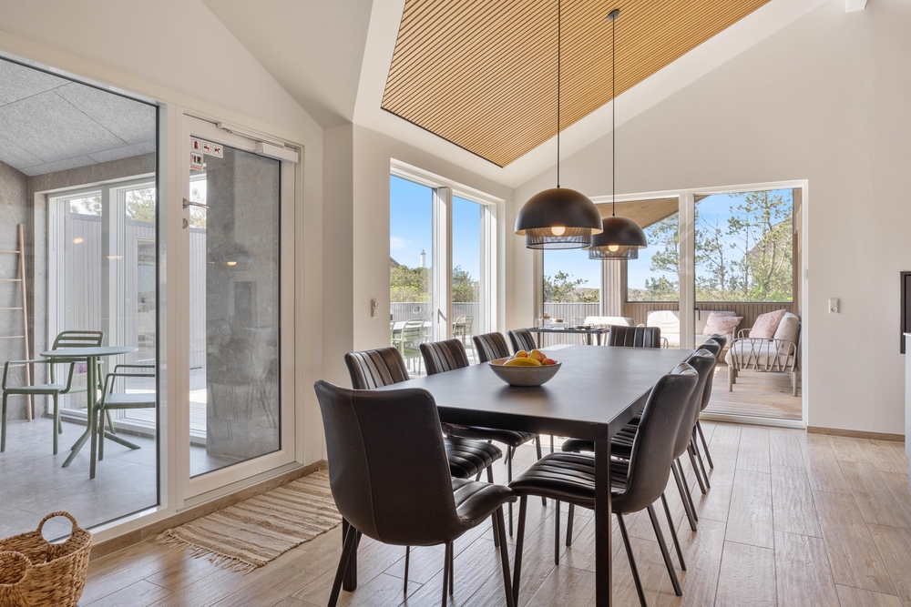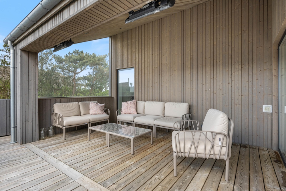 Dieses stilvolle und moderne Ferienhaus in Fyrmarken 155 in Nørre Lyngvig bietet auf 180 m² viel Platz für den nächsten Familienurlaub oder für Freunde, die einfach mal Lust haben, die Seele baumeln zu lassen. Dieses Ferienhaus lässt keine Wünsche offen und bietet euch den perfekten Rahmen für euren Urlaub an der dänischen Westküste. Im Innenbereich gibt es so viele Dinge zu entdecken ? es gibt einen Salzwasserpool, einen Aktivitätsraum und ein großes, harmonisches Familienzimmer. Der schöne Außenbereich überzeugt mit gemütlicher Loungeecke, Außenwhirlpool und Außensauna.