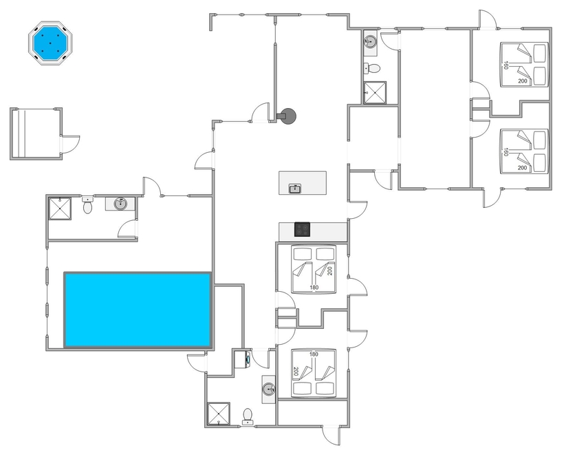 Macht eine Flasche Wein auf, wohltemperiert, aus dem Weinkühlschrank und genießt euren Urlaub in vollen Zügen. Für einen erholsamen Schlaf gibt es 4 gemütliche Schlafzimmer, alle mit qualitativ hochwertigen Boxspringbetten ausgestattet. Jedes Schlafzimmer hat einen direkten Zugang zur Terrasse. Die 3 hochmodernen Badezimmer sind alle mit Dusche und Fußbodenheizung ausgestattet.