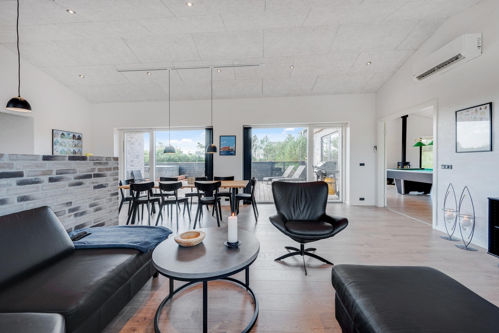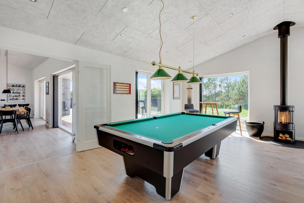 Dieses in 2020 neu errichtete Ferienhaus bietet für jeden Geschmack etwas. Angefangen von einer modernen und mit allen Annehmlichkeiten versehenen Einrichtung bis hin zu einem Aktivitätsbereich und nicht zu vergessen ? eurem eigenen Außenwhirlpool auf der Terrasse ? hier lässt es sich wahrlich gut entspannen. Während im kombiniertem Wohn- und Essbereich leckere Gerichte gezaubert werden, können die Wettkampf begeisterten schnell noch eine Runde Poolbillard spielen, bevor es an den großen Esstisch geht, um lecker zu Essen und den Tag Revue passieren zu lassen. Für diejenigen unter euch, welche es gern ein bisschen gemütlich und warm haben, bieten sich mehrere Möglichkeiten, Wärme zu tanken. Angefangen mit dem Kamin, welcher gerade an kühleren Abenden eine angenehme Wärme verbreitet, der Sauna, welche für die totale Entspannung sorgt oder aber das Extra auf der Terrasse ? der ganzjährig nutzbare Aussenwhirlpool. Ihr entscheidet, womit ihr euren Wellnessabend startet.