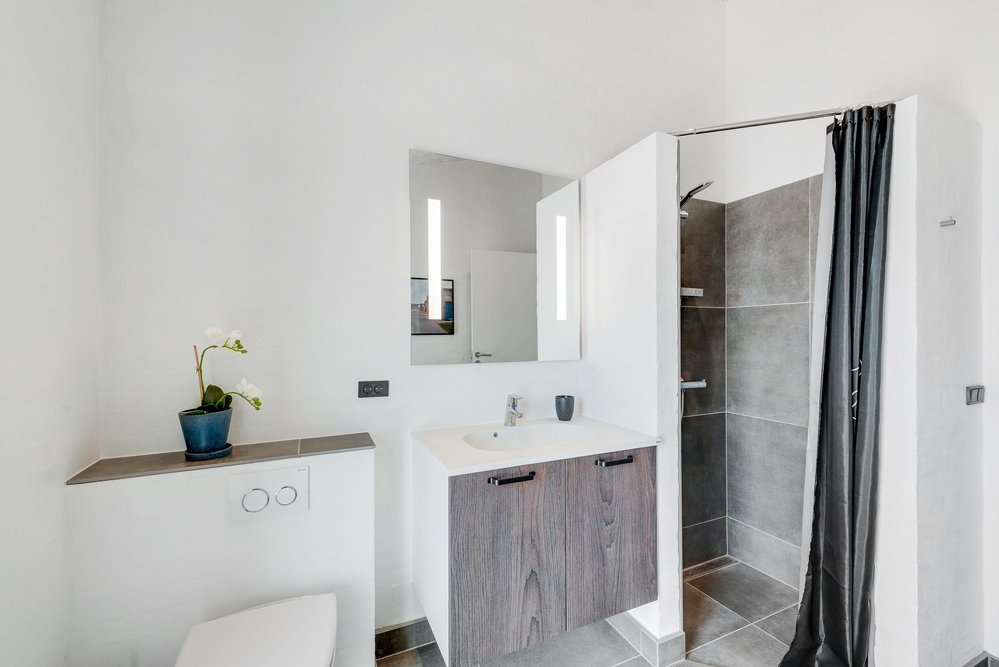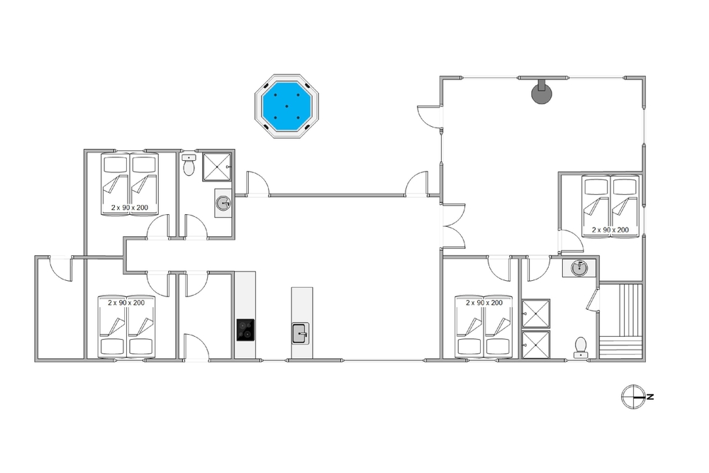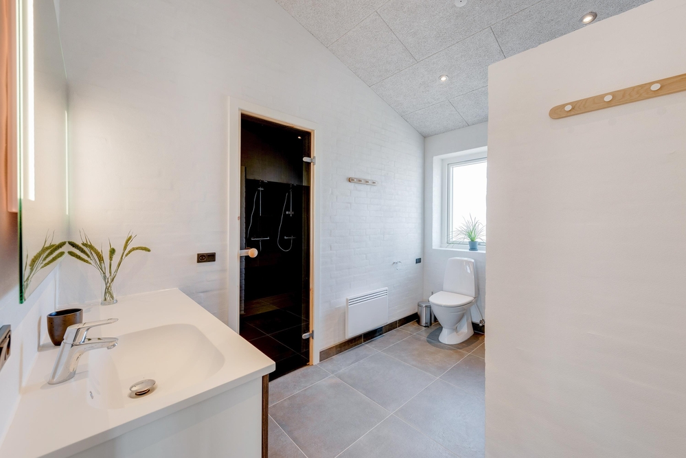 Die beiden Badezimmer verfügen jeweils über ein WC sowie ein Duschbad. Durch die gute Raumaufteilung eignet sich dieses Ferienhaus auch gut für einen Urlaub mit Freunden. Oder solltet ihr kleinere Kinder haben, können diese im Schlafzimmer, welches etwas weiter weg vom Aktivitätsbereich liegt, schlummern, während ihr euch bei Spiel und Spaß amüsiert.