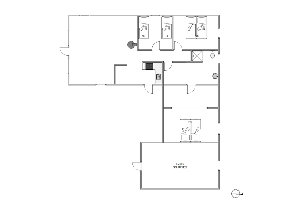 Das Ferienhaus ist mit Küche, 1 Badezimmer und 3 Schlafzimmern ausgestattet ? 2 der Schlafzimmer sind mit einem Doppelbett versehen und im 3. befinden sich 2 Einzelbetten.