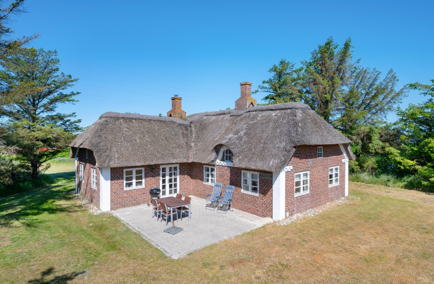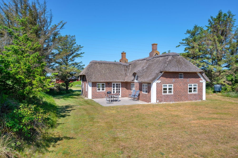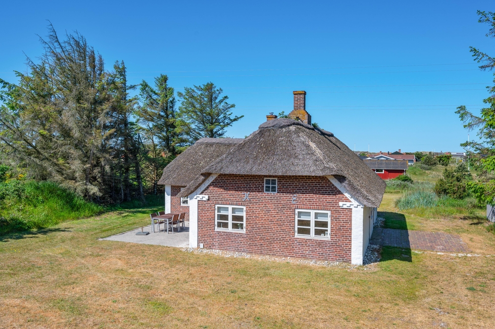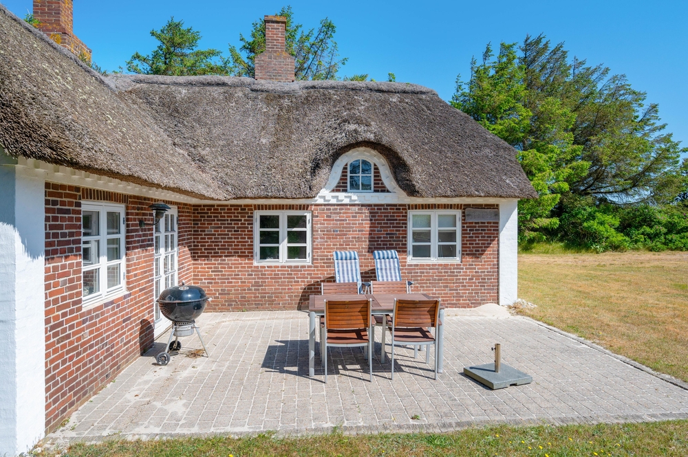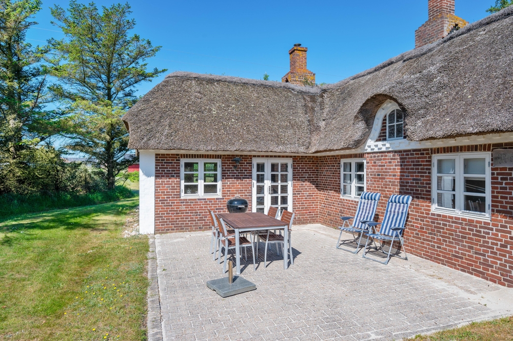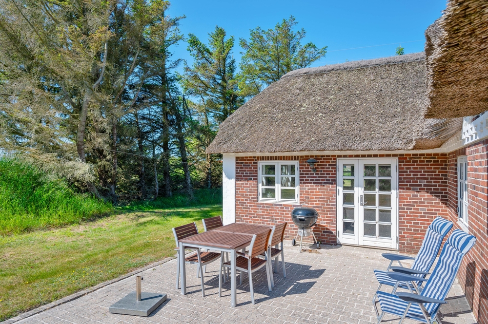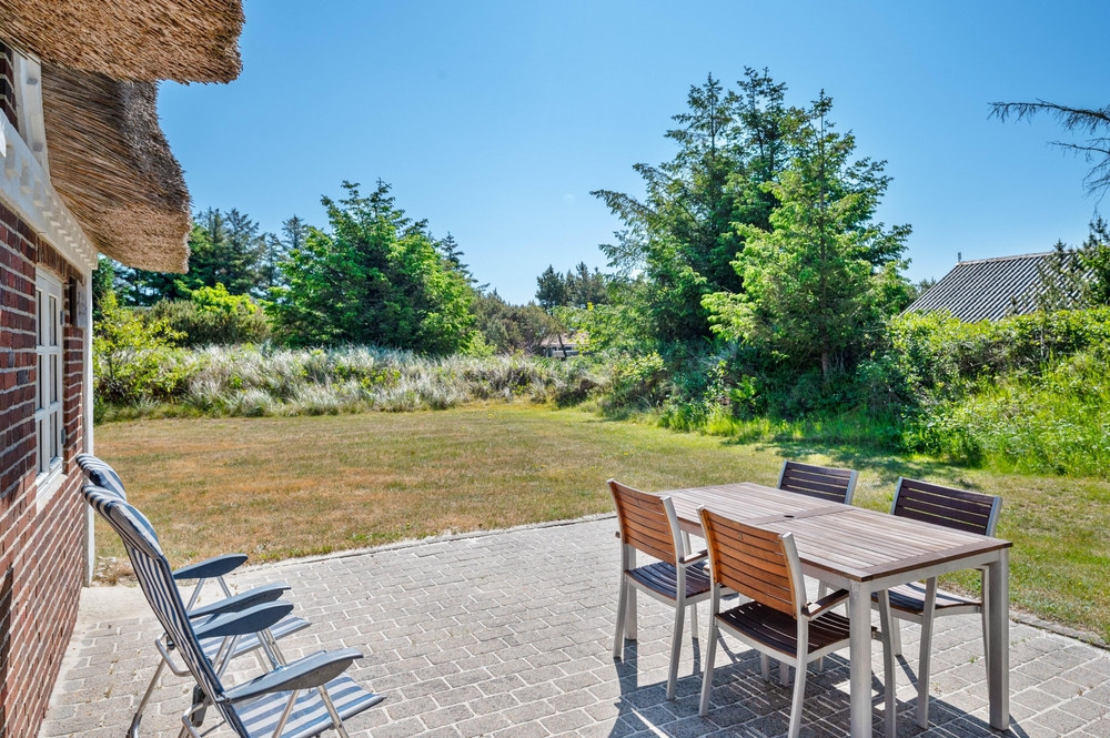 Auf der großen Rasenfläche vor dem Ferienhaus gibt es für die Kinder viele Möglichkeiten zu spielen und Spaß zu haben, während die Eltern auf der offenen, aber geschützten Terrasse, ihren Kaffee oder einen schönen Grillabend genießen können. Es gibt sowohl Liegestühle als auch Sonnenschirme und einen Grill. Die perfekte Ausstattung für einen herrlichen Sommertag.
