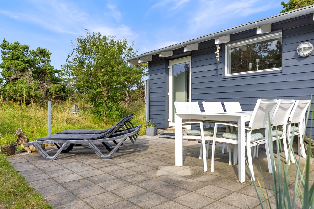 Richtig ?hyggelig? wird es dann auf der Terrasse: geschützt gelegen können alle 4 Personen (und natürlich der Hund) ein Plätzchen in der Sonne ergattern. Dort sitzt ihr inmitten der Natur und seid komplett ungestört. Ein entspannter Grillabend wird euch vollständig aus dem Alltagsstress holen und ihr seid so richtig in Dänemark angekommen.