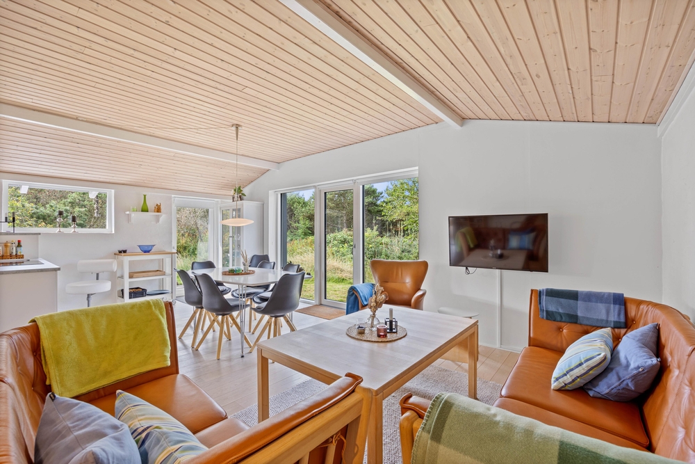 Nur eine kurze Autofahrt weiter vom Fyrrekrat 11 liegt der nahezu endlose Sandstrand, wo ihr lange Spaziergänge machen könnt. Søndervig liegt ebenso weit entfernt, sodass ihr nach nur ein paar Autominuten durch die Geschäfte bummeln könnt. Wie wäre es ansonsten mit einem Morgenspaziergang mit dem Familienhund zum schönen Fjord? Auch die alte Handelsstadt Ringkøbing ist immer einen Besuch wert, hier könnt ihr in den kleinen Gassen schlendern, einen Kaffee und Kuchen in den Cafes genießen um danach noch ein bisschen shoppen zu gehen.