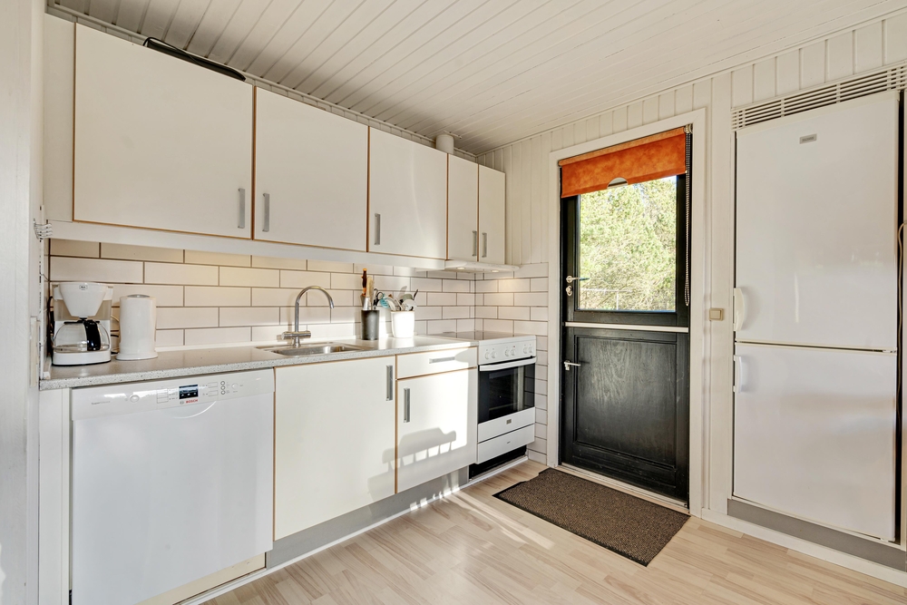 Die offene Küche ist mit allem ausgestattet, was ihr für eine stressfreie Selbstversorgung braucht, inklusive einer Spülmaschine. Direkt daneben befindet sich der Essbereich, an dem ihr gemeinsam essen und über eure Urlaubserlebnisse plaudern könnt.