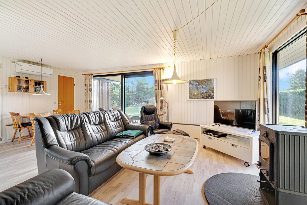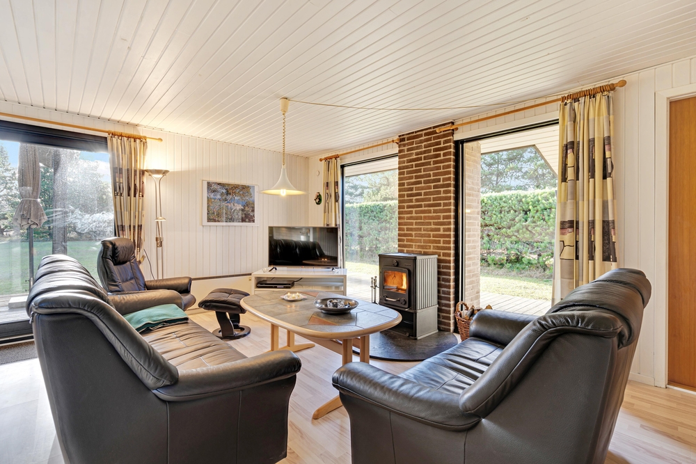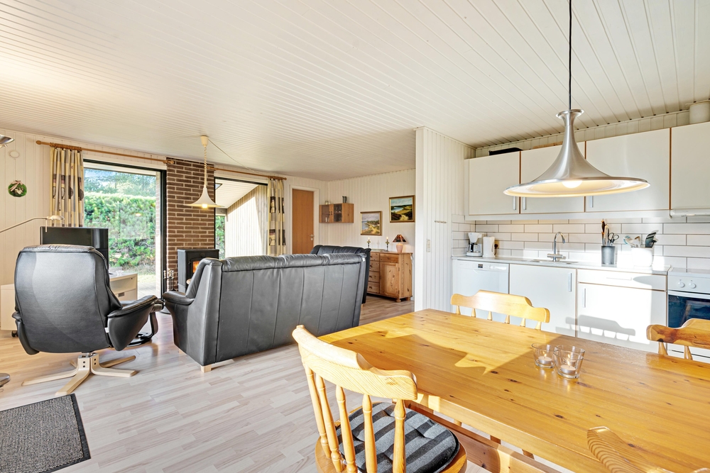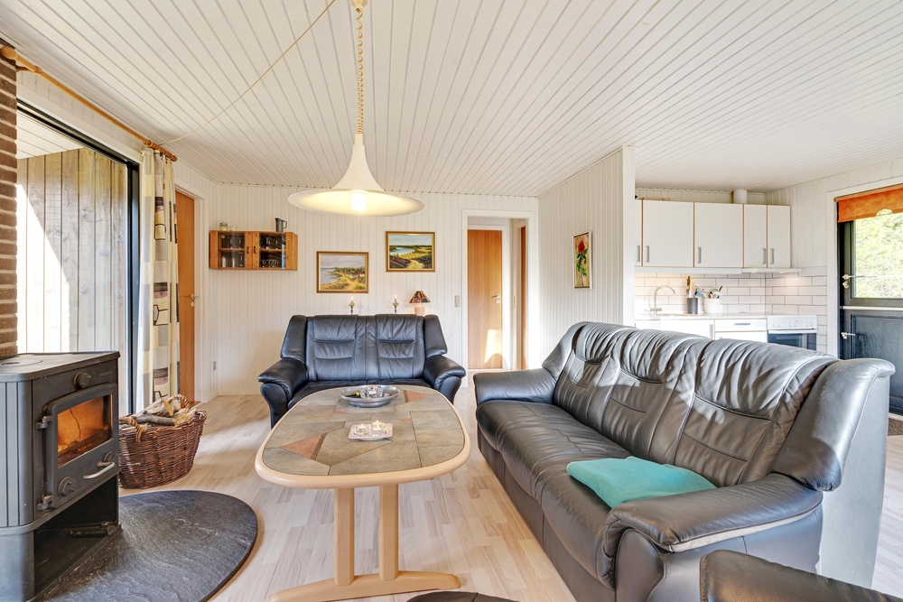 Das Herzstück des Ferienhauses ist der Wohnbereich, in dem der Kaminofen an kühleren Tagen für wohlige Wärme sorgt. Hier könnt ihr es euch auf dem Sofa bequem machen, euch in eine spannende Lektüre vertiefen oder einen entspannten Spieleabend mit euren Liebsten verbringen.
