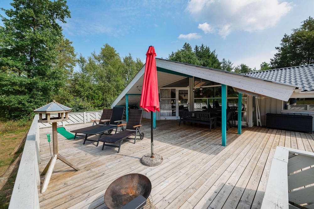 Auf dem schönen Grundstück könnt ihr auch mit alle Mann Volleyball oder Badminton spielen, wenn es euch auf der Sonnenliege zu langweilig werden sollte. Wollt ihr nachmittags einen Spaziergang machen, dann lohnt es sich die Blåbjerg Plantage zu besuchen.