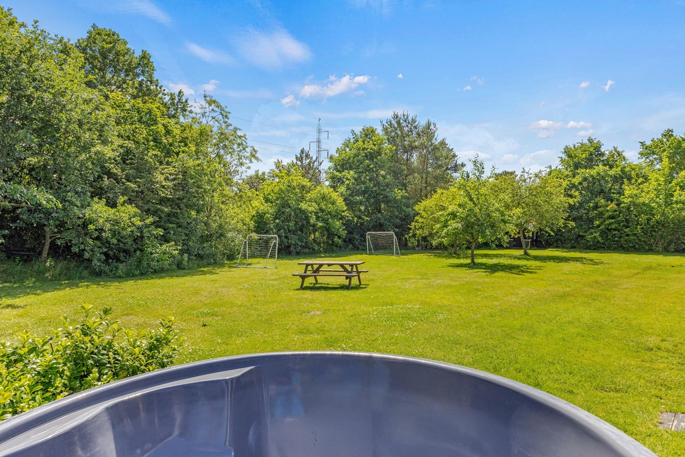 Neben einer Badetonne, der ideale Ort, um unter dem klaren Sternenhimmel zu relaxen, bietet das Ferienhaus im Fyrrelunden 1 auch einen Shelter, der ein Gefühl von Abenteuer vermittelt.